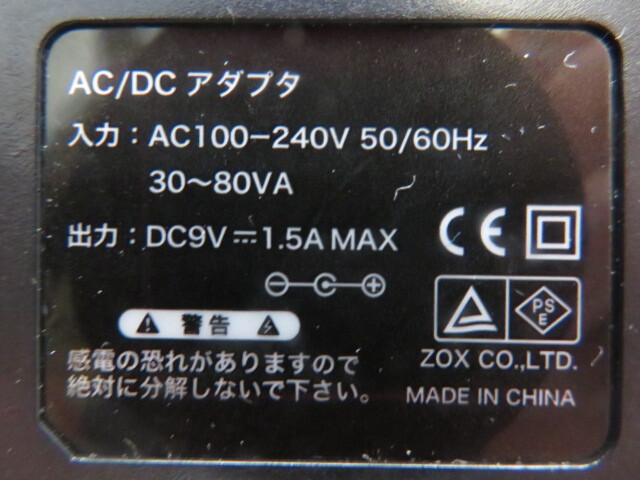 AD34159★ZOX★ACアダプター★型番不明 DC9V 1.5A★保証付!即決!