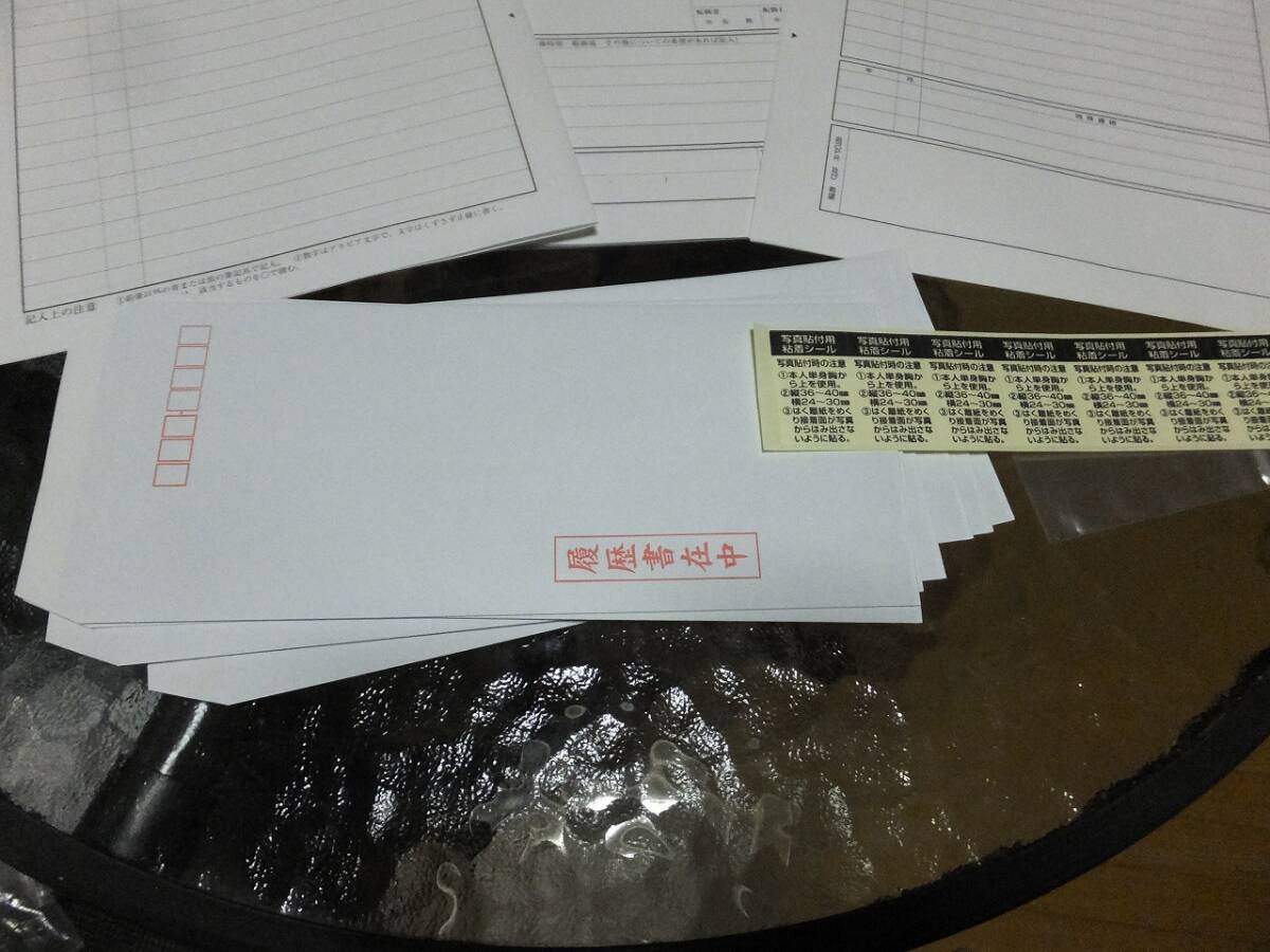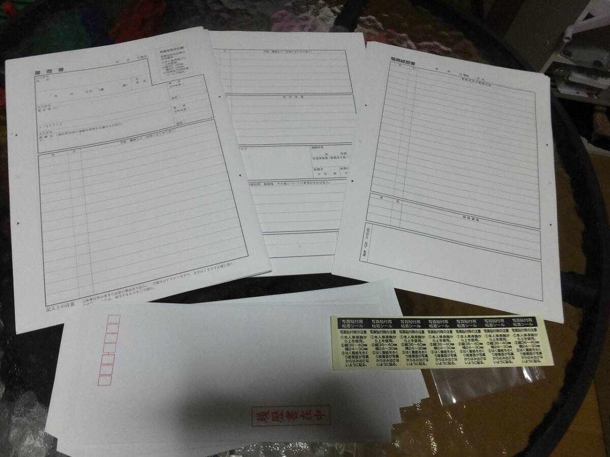 履歴書用紙(B5二つ折り)・職務経歴書用紙(B5)・封筒・写真用シール 7組セット です。