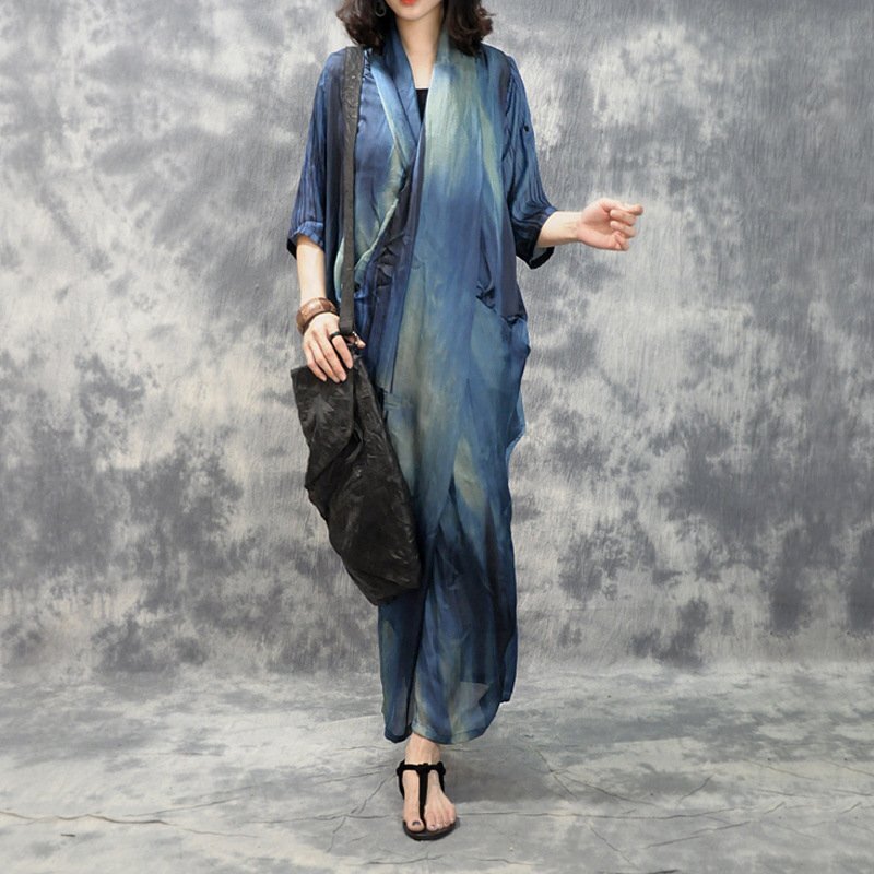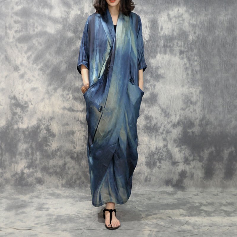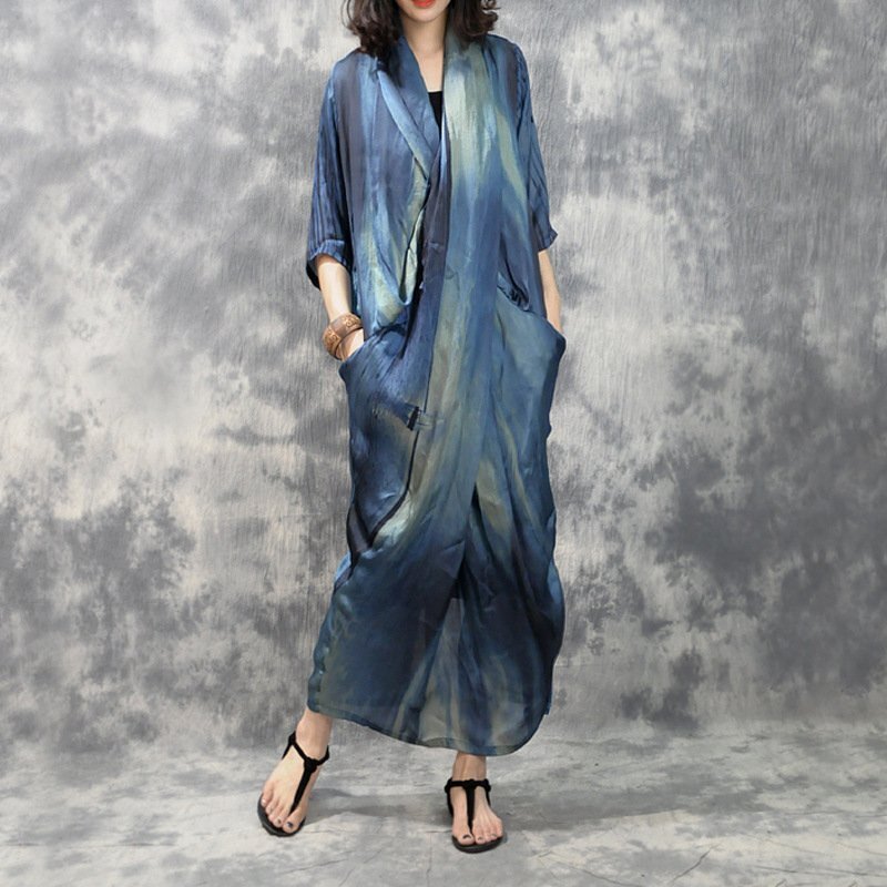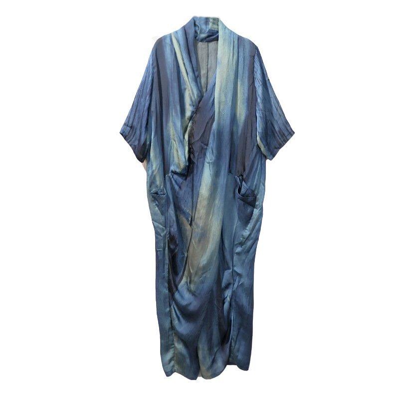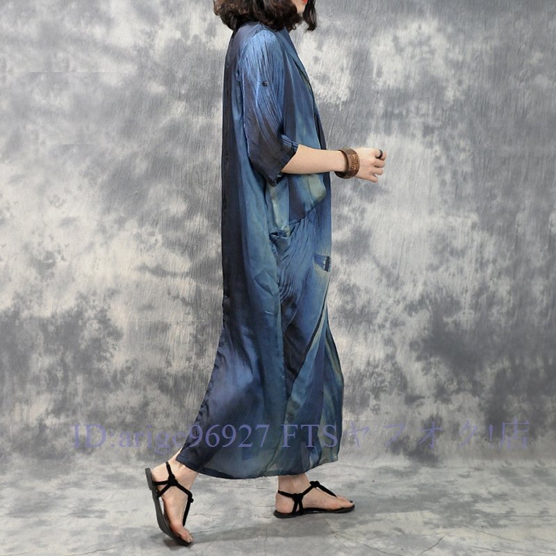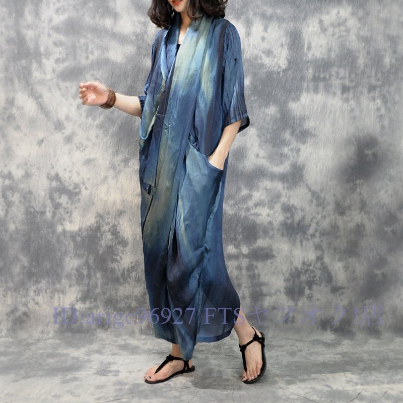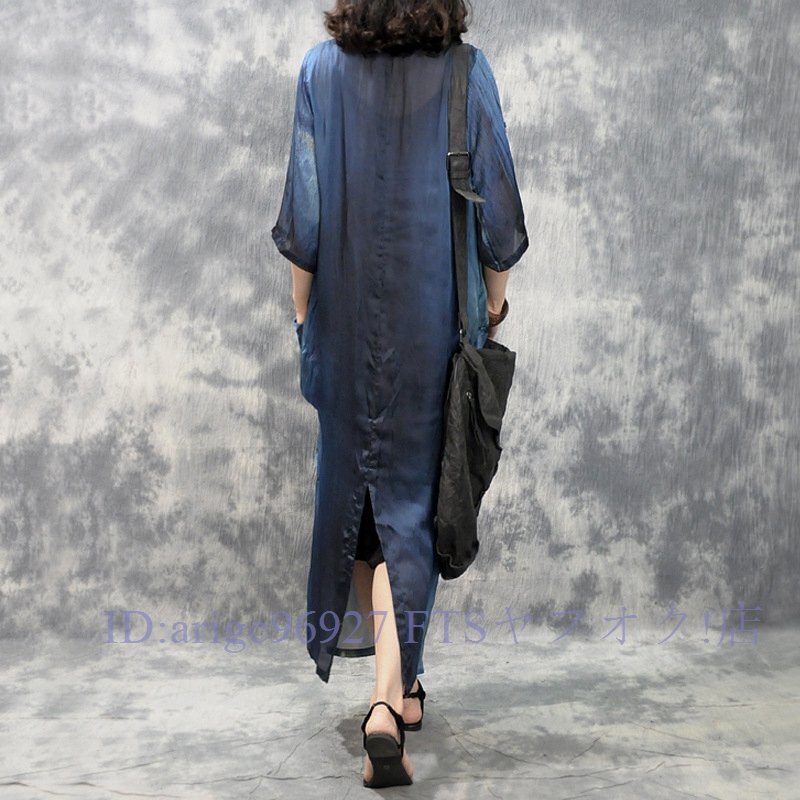 B0326☆新品レディーストップス チュニック ロング丈ワンピース 柔らかい肌触りいいシルク入り アンティークなデザイン