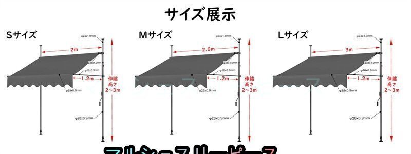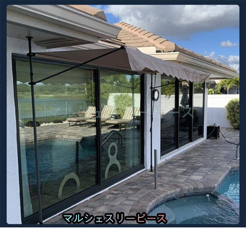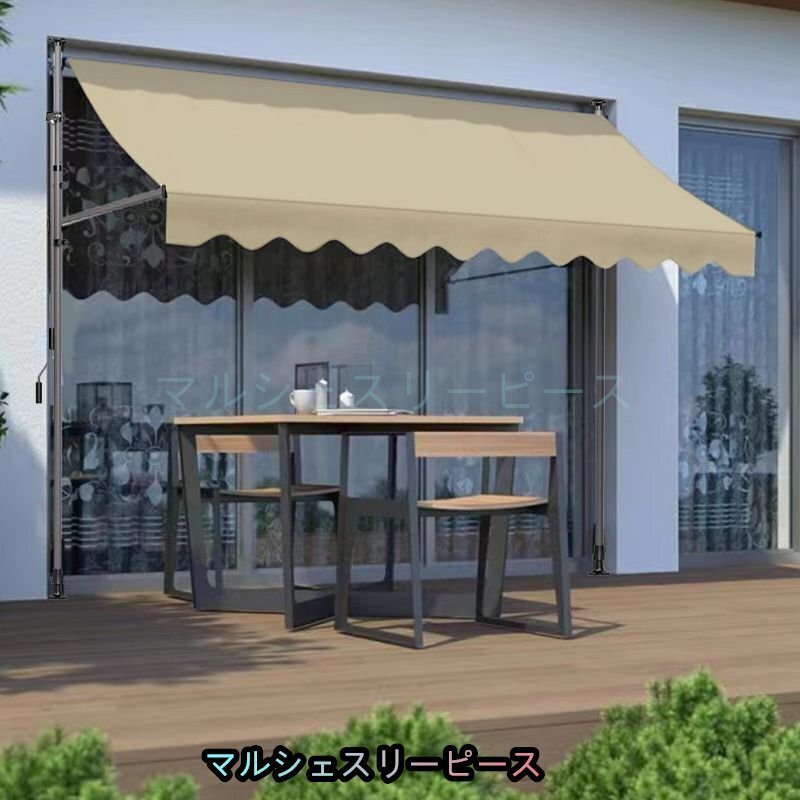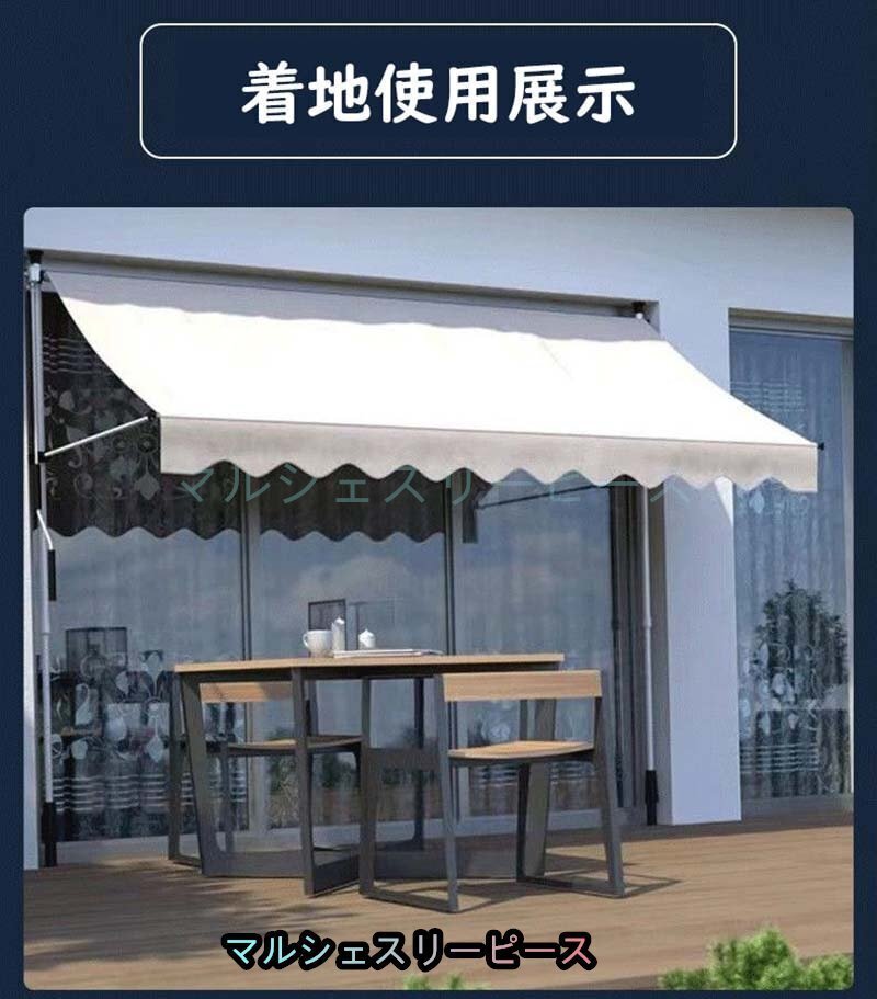 オーニングテント 日除け ひさし 屋根 後付け 巻き上げ 伸縮式 手動 防雨 庭用サンシェード 巻き取り 大型 廊下 屋外(Lサイズ)
