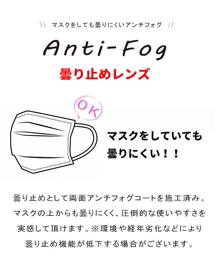 フレーム:マットブラック レンズ:防曇ライトスモーク 可視光線透過率:54% |