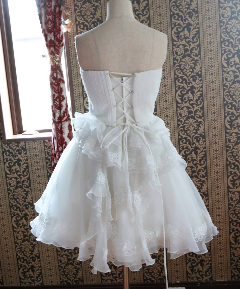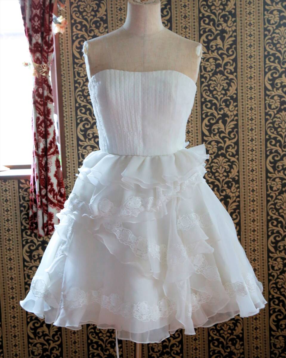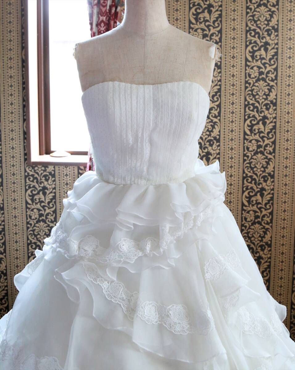 生地は上半身がレース、スカート部分はオーガンジーや刺繍レース