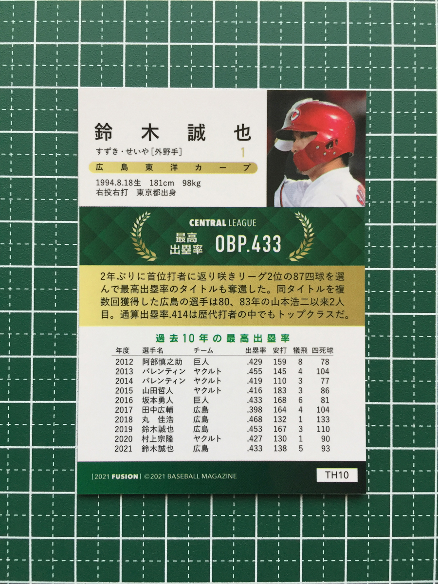 ★BBM 2021 プロ野球 FUSION #TH10 鈴木誠也[広島東洋カープ]レギュラーカード「タイトルホルダー/最高出塁率」★