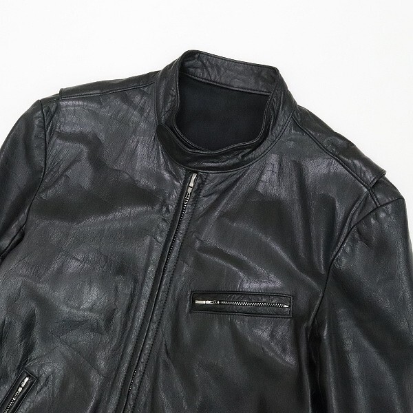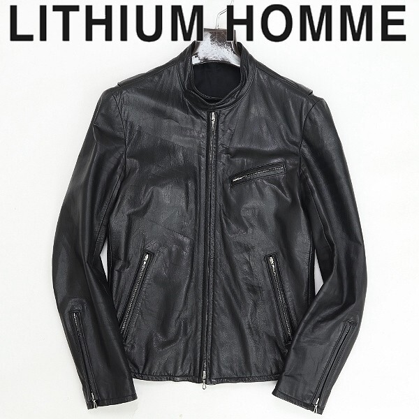◆LITHIUM HOMME リチウム オム 牛革 レザー シングル ライダース ジャケット黒 ブラック 44 | |