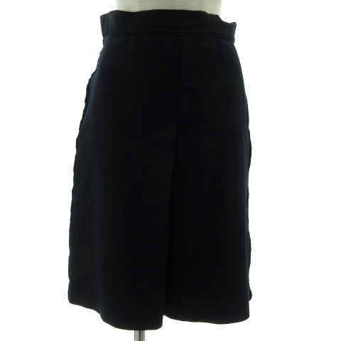 ズッカ zucca スカート ZU13-FG026 ストレート ミディ丈 切替え フリンジ 日本製 ネイビー 紺 S レディース