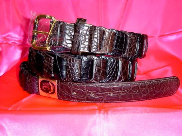 本物マットクロコダイル編み込みベルト(黒&こげ茶)N325 | |