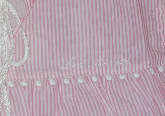 スクレ by ラデュレ/Les secrets by LADUREE Narue★4段ギャザー ワンピース ルームウェア★M-Lサイズ★綿100%生地★ピンク ストライプ柄