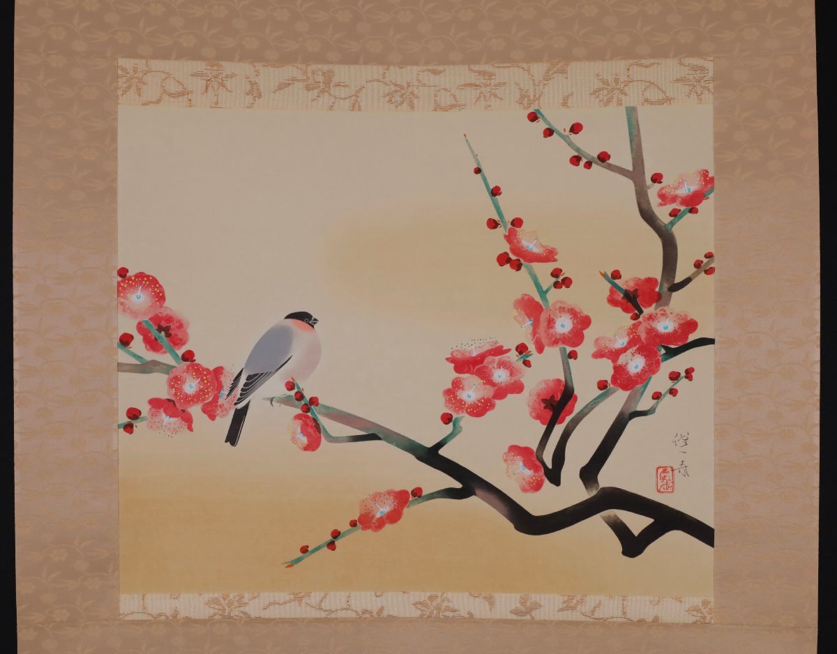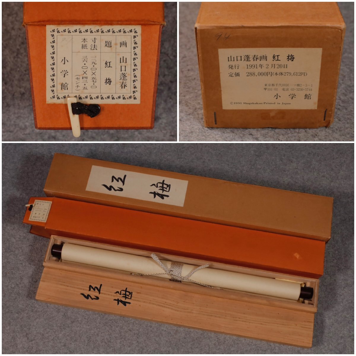 【工芸印刷】吉】10867 山口蓬春 紅梅 小学館 松岡映丘師事 北海道の人 茶掛け 茶道具 掛軸 掛け軸 骨董品