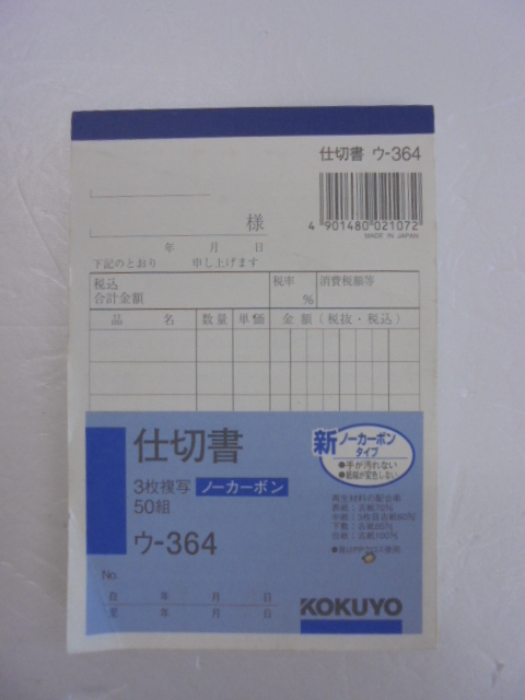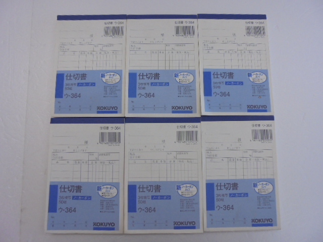 【KCM】□2pbg-464-6s★未使用品★【KOKUYO/コクヨ】 仕切書 B7 タテ型 8行 50組 6冊セット 3枚複写 ノーカーボン ウ-364