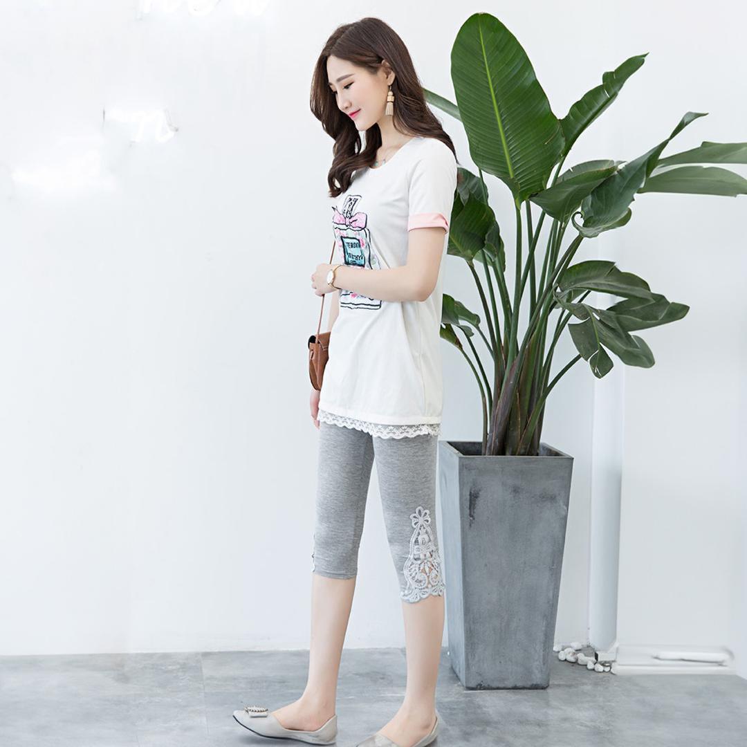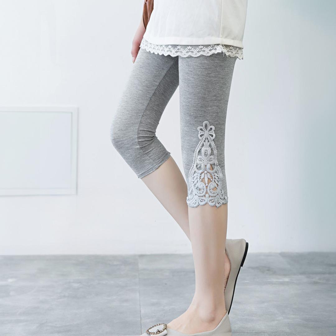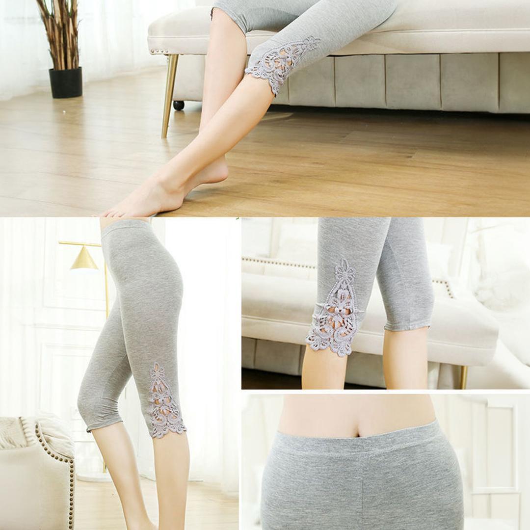 この7分丈レギンスは、デイリーコーディネートにぴったりのアイテムです。柔らかな素材を使用し、肌に優しく快適な履き心地を提供します。裾部分のレースデザインがアクセントとなり、女性らしさを引き立てます。