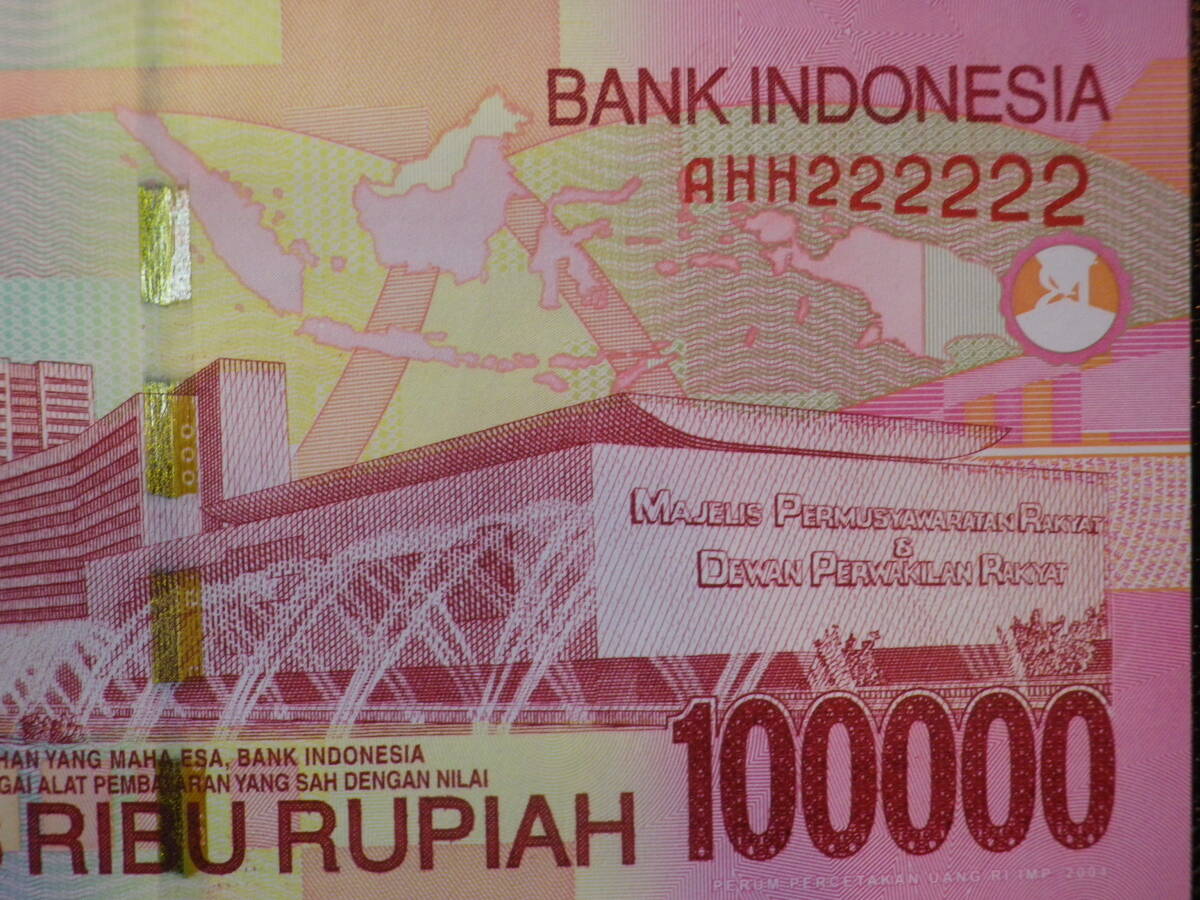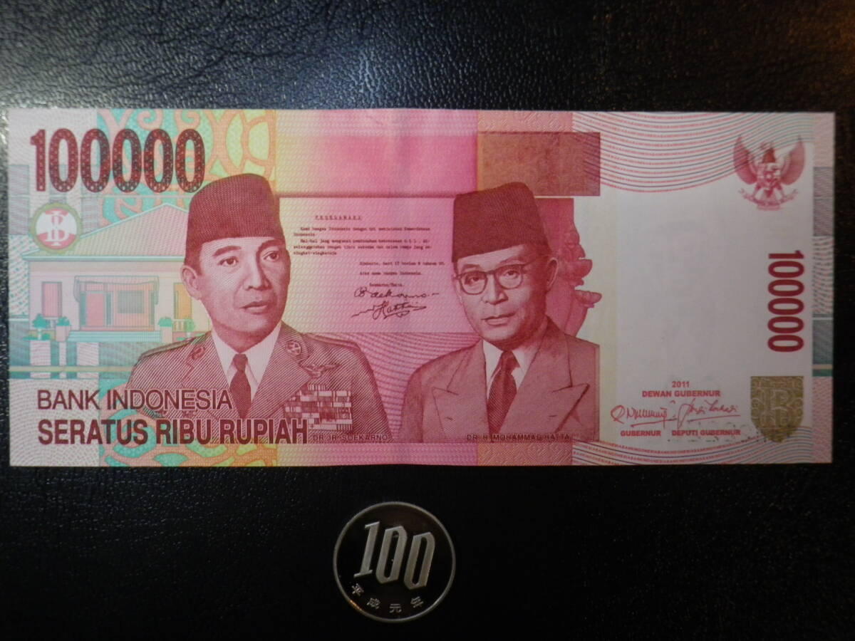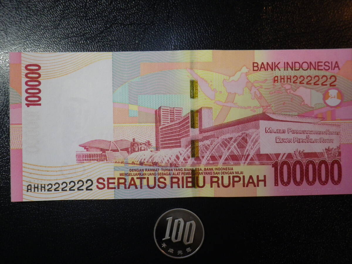 珍番 インドネシア 2011年 100000Rupiah AHH 222222 未使用