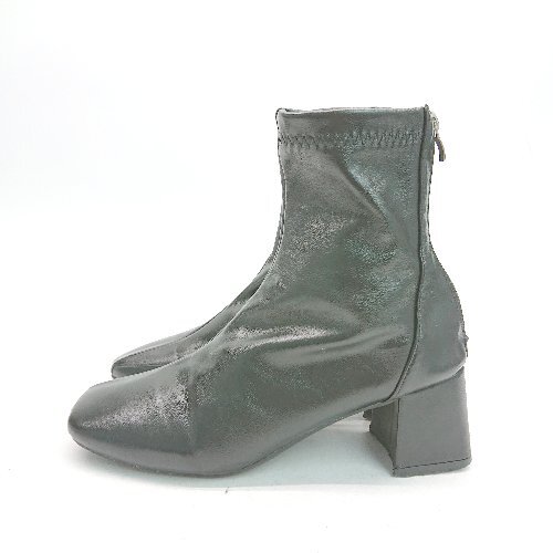 ◇ ノーブランド スクエアトゥ バックファスナー チャンキーヒール ショート ブーツ サイズ240 ブラック レディース E
