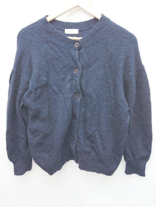 ◇ SHIPS any シップス エニィ 羊毛 シンプル ふわふわ 長袖 カーディガン サイズF ネイビー レディース P