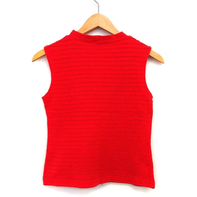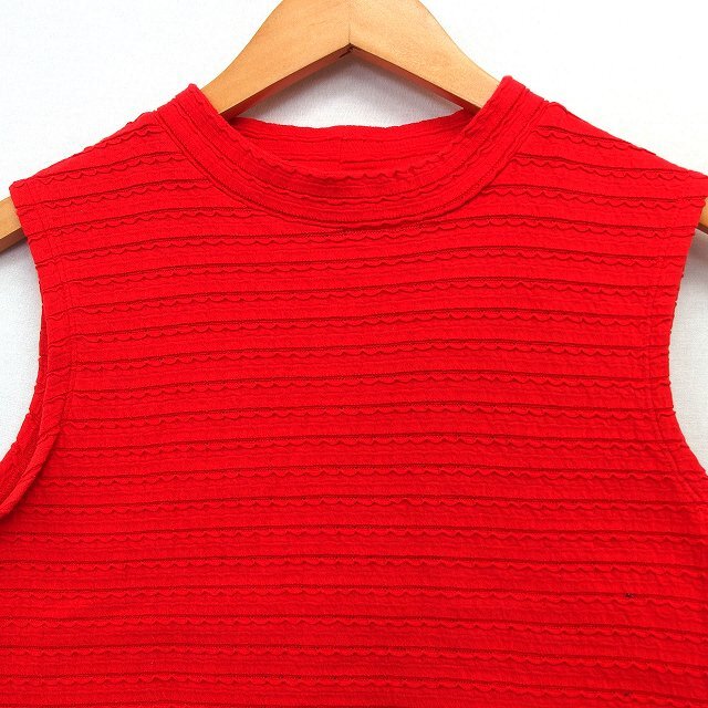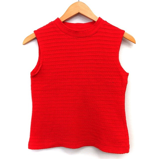 レイビームス Ray Beams リブ カットソー フリル ノースリーブ 丸首 コットン 綿 レッド 赤 /HT34 レディース
