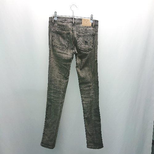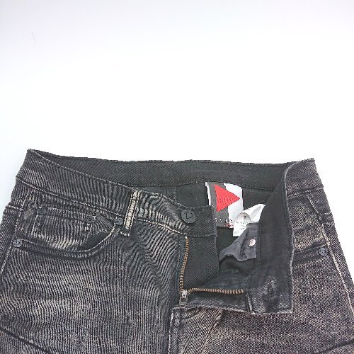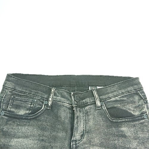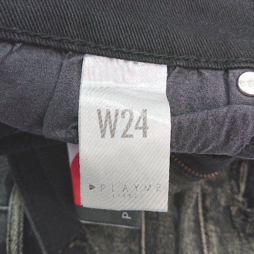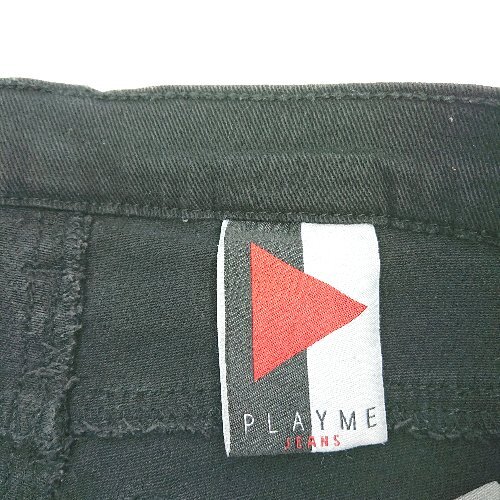 ◇ Playme Jeans フロントファスナー ダメージ加工 レースメッシュ クール ジーンズ サイズW24 ブラック レディース E
