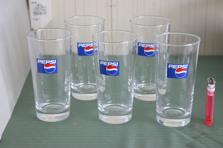 再■ み-963 ペプシ グラス 5個 保管品 箱なし ※約寸単品)高さ15cm 口直径7.6cm 重さ320g