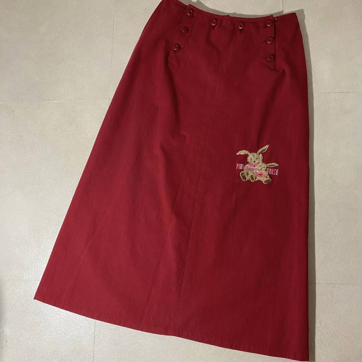 PINK HOUSE ピンクハウス スカート ワンポイント刺繍 セーラーフロント コットン ロング丈