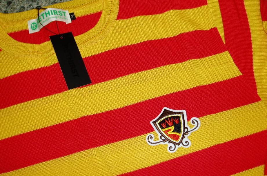 名古屋のインディーズブランドRETHIRSTのセーターです。定価は¥9800(税抜)サイズはM表示で着丈69cm身幅55cmぐらいの実寸です。肌触りのいい綿ニットなので素肌で着てもチクチクしない!ゆうパケットで良ければ送料無料!オサレな配色デザインを着こなせる方へ!
