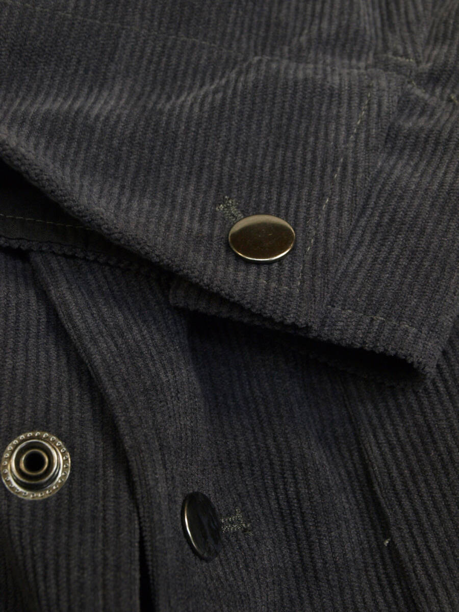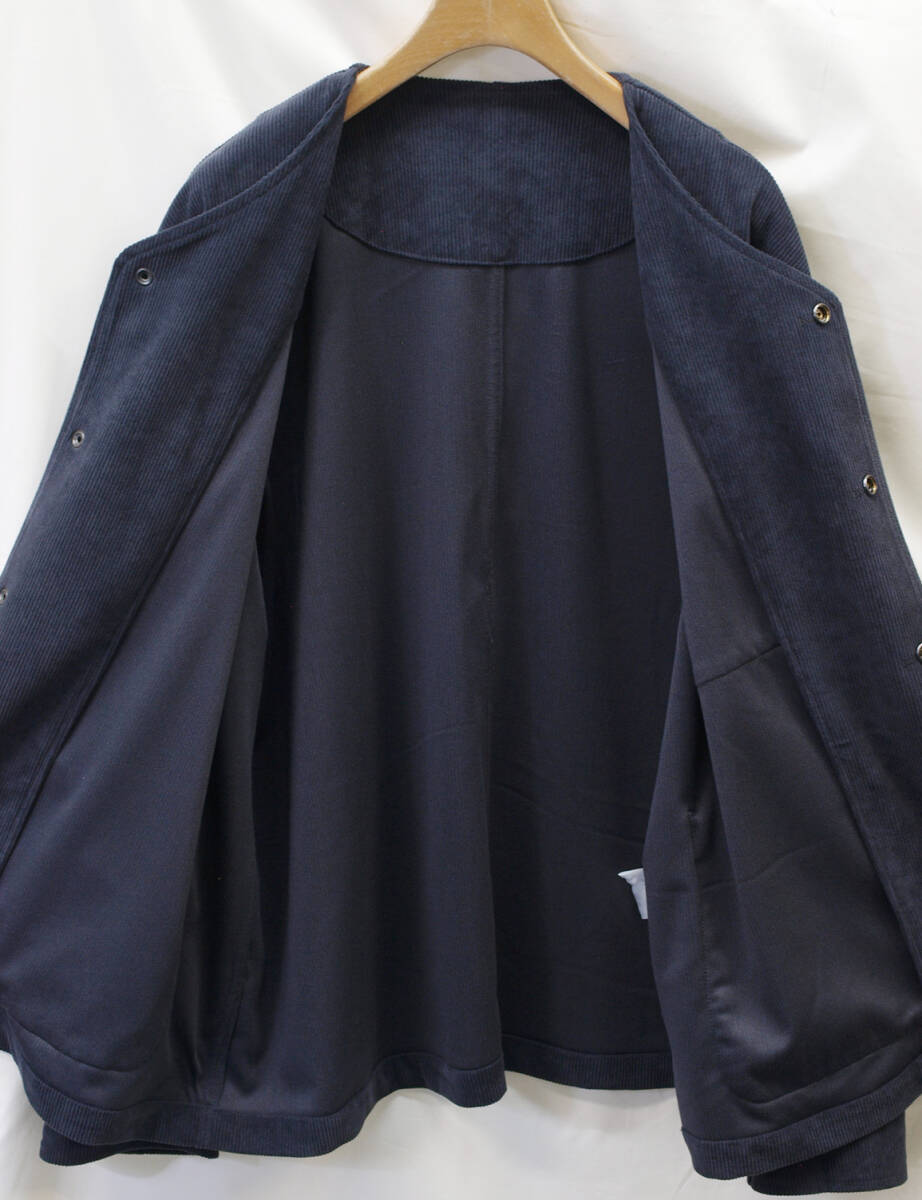 【サイズ】 M (A5~AB5号サイズ相当) 目安の体型 身長165cm~175cm、ウエストサイズ72cm~95cm 【ジャケット実寸】 肩幅59cm 着丈67cm 袖丈57.5cm 脇下部分60cm 身幅60cm 【パンツ実寸】 ウエスト(胴回り実寸)最小72cm~最大95cm(ウエストゴム仕様) わたり幅36cm(股下10cmの部位で33.5cm) 裾幅20cm 脇股上29cm 前股上33.5cm 股下68cm(三つ折りで裾上げ済の状態/新品) 【素材】 表地:ポリエステル100% 裏地:胴裏/なし 袖裏/なし 秋冬向けやや厚手ポリエステルコーデュロイ素材を使用 【色】 濃いグレー 【柄】 無地 【デザイン】 ゆったりとしたオーバーサイズのビッグシルエット、カーディガンスーツ新品、裾上げしていない状態です。 ・ジャケットはノーカラーでシングルスナップボタン、カーディガンスーツ、ゆったりシルエット ・パンツはゆったりシルエットの短め丈ウエストシャーリングパンツ 秋冬対応商品です。 【縫製仕様】 ・ジャケットはノーカラー、前身5つのスナップボタン、アウトポケット、胸ポケット/アウトポケット、肩パットなし、袖口スナップボタン1つ、ノーベント、内ポケットなし、裏地なし ・パンツはノータック、ベルトループ付き、ウエスト部分ゴムシャーリング、内側にドローストリング(紐付き)、膝裏当てなし、脇ポケット斜め付け、後ろポケット右左ともにアウトポケット、フロントはファスナーでボタン仕様
