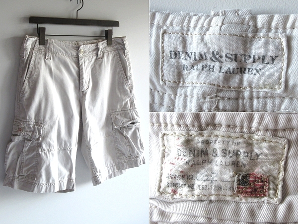 DENIM&SUPPLY RALPH LAUREN デニム&サプライ ラルフローレン 星条旗/ロゴワッペン ビンテージ加工 カーゴショーツ ショートパンツ w29
