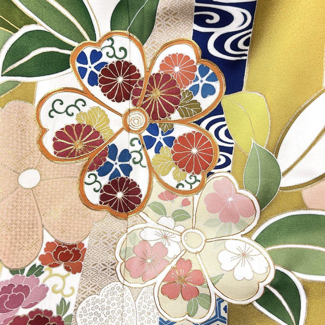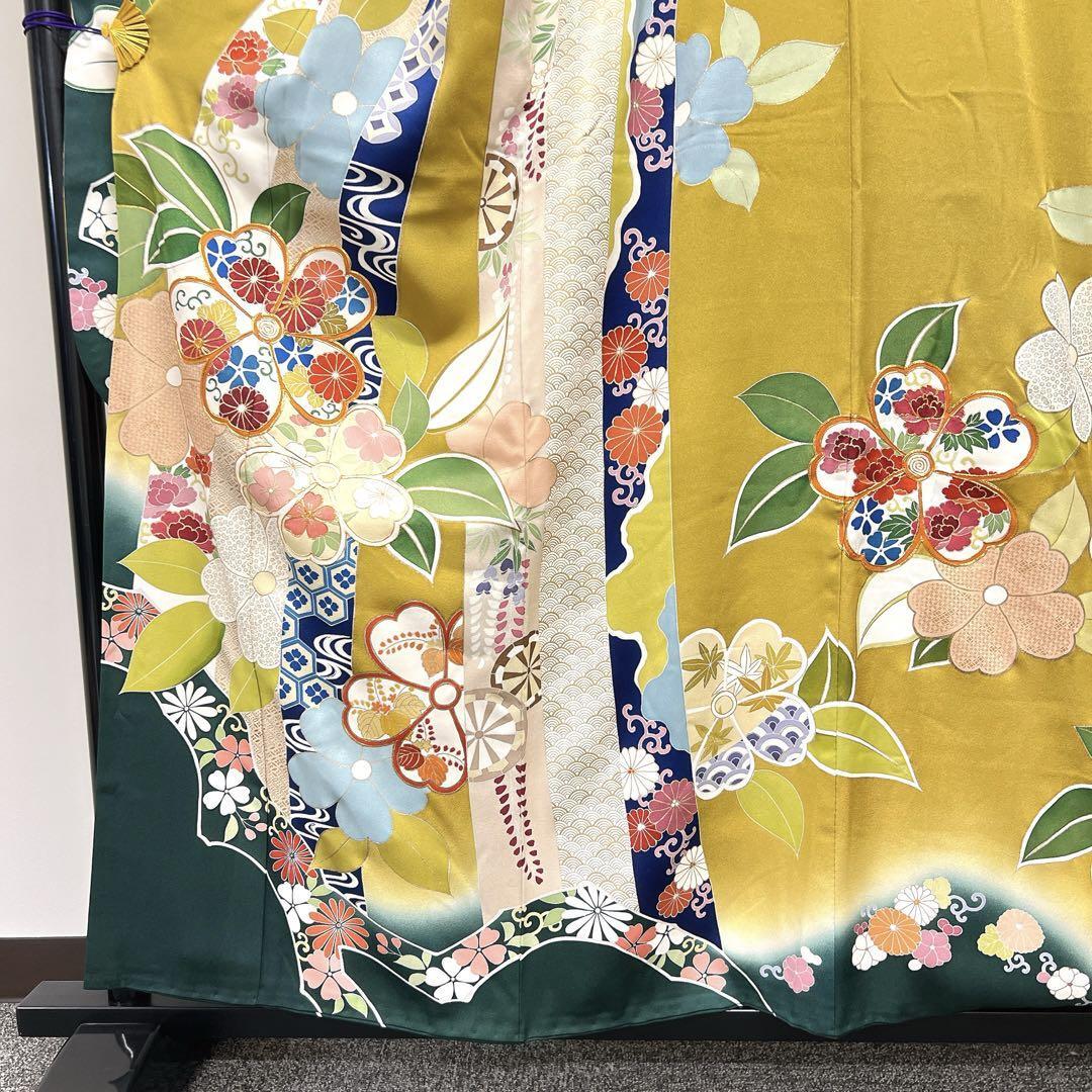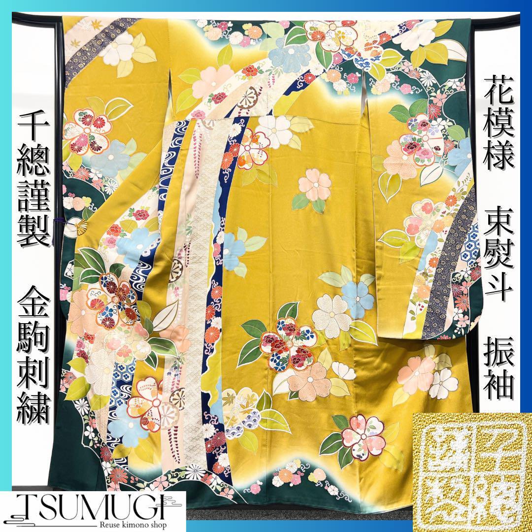 千總謹製 金駒刺繍 花模様 束熨斗 振袖 着物 123w