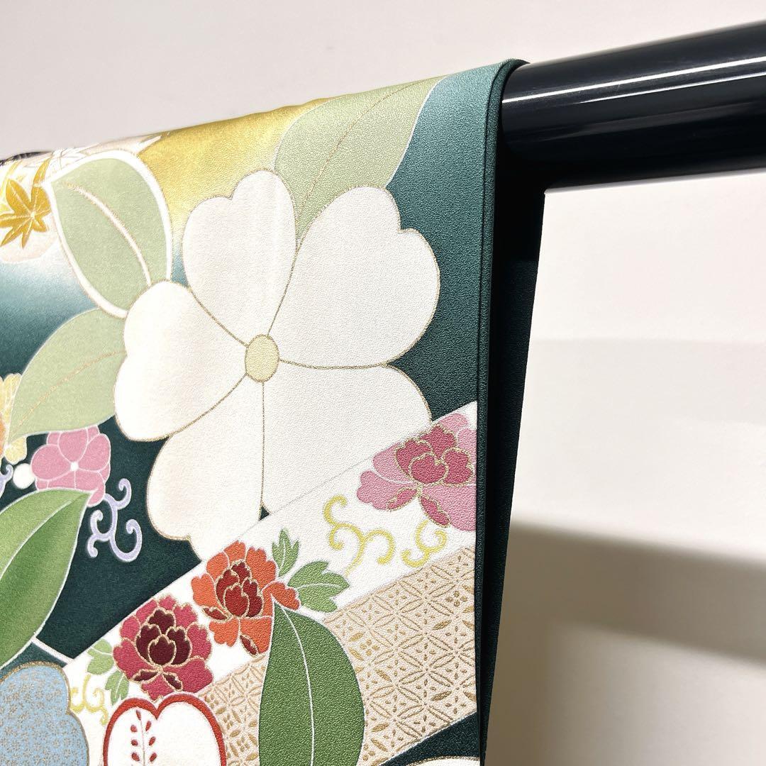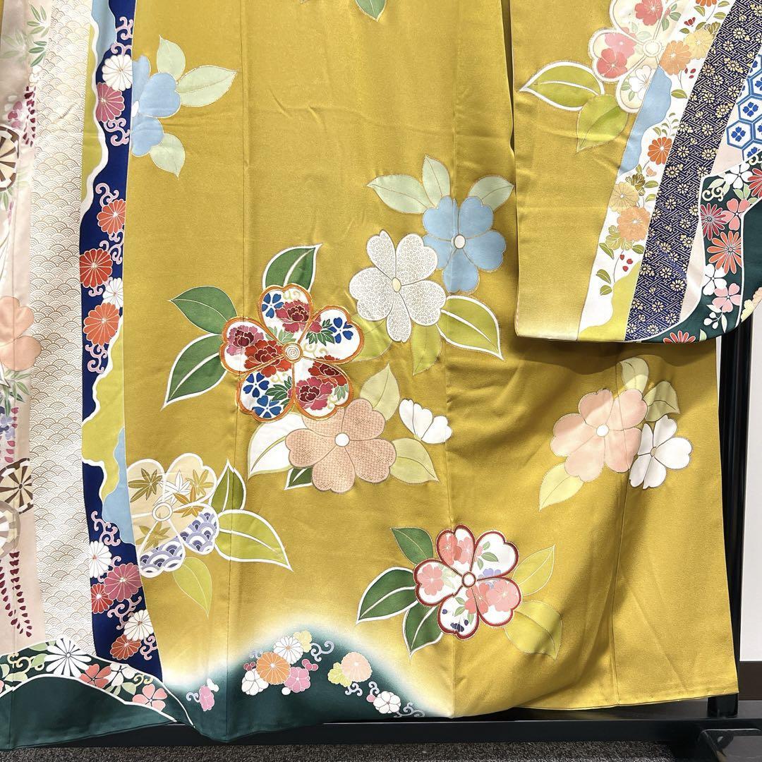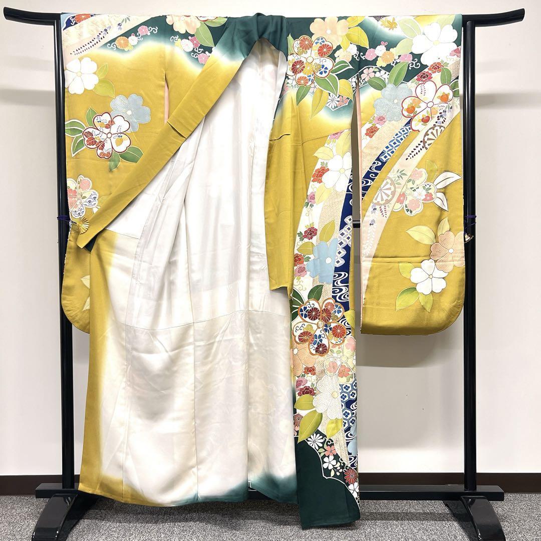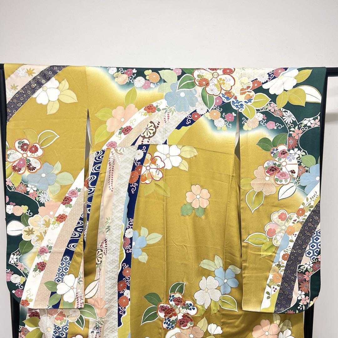 千總謹製 金駒刺繍 花模様 束熨斗 振袖 着物 123w