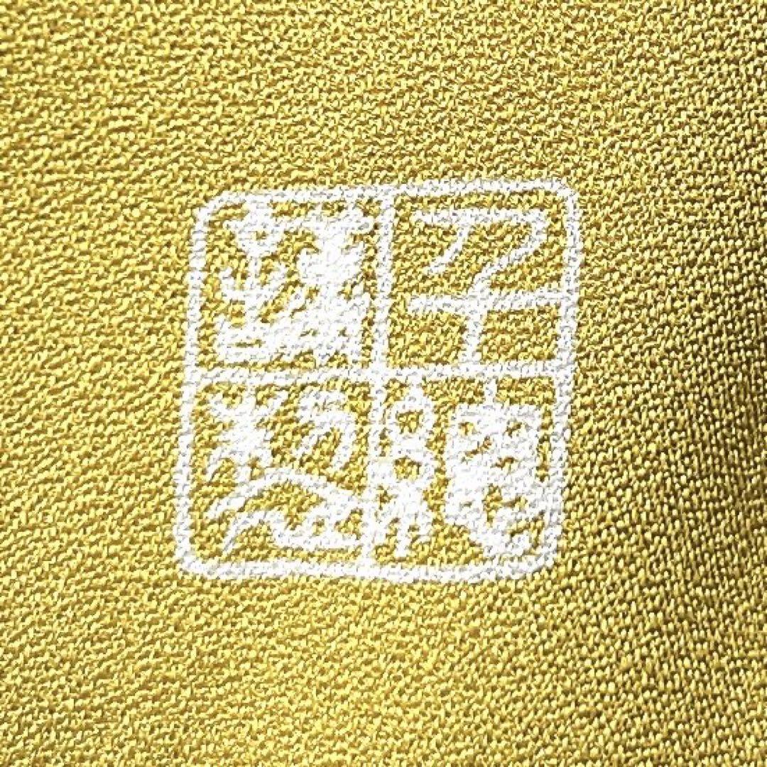 千總ならではの極上の生地に山吹色に伝統和模様、金駒刺繍があしらわれた大ぶりな花模様がデザインされた一着です。