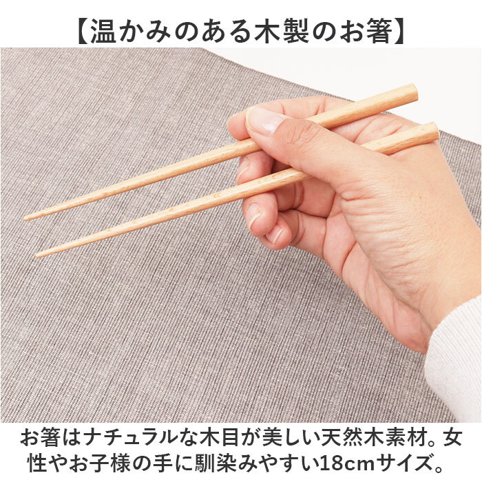 素材 | ・素地の種類 [箸]天然木 [箸ケース]ABS樹脂 ・表面塗装の種類 [箸]アクリル塗装 [箸ケース]ウレタン塗装 |