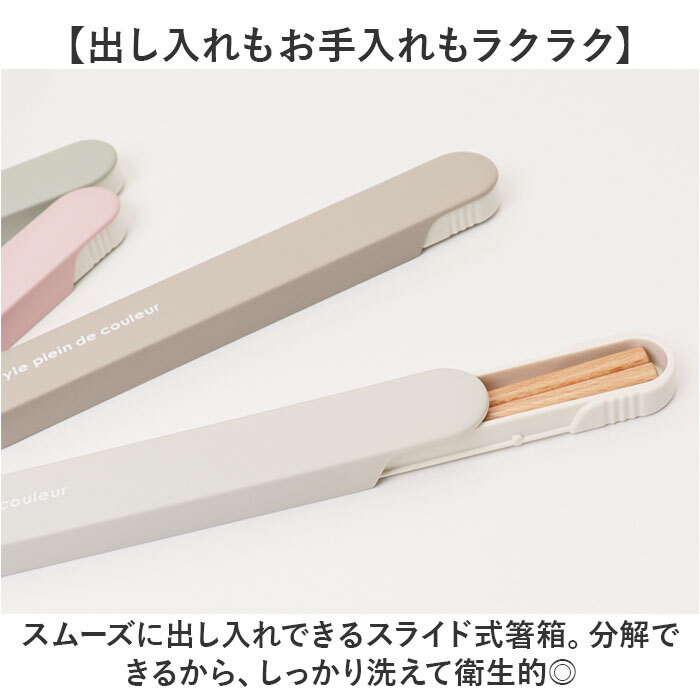 商品説明 | ・・【ランチのお供にぴったり】 ・使いやすく、持ち運びにも便利。日本製の「Colors 箸ケースセット」が新登場。 ・【出し入れもお手入れもラクラク】 ・スムーズに出し入れできるスライド式箸箱。分解できるから、しっかり洗えて衛生的◎ ・【抗菌加工でいつも清潔】 ・ケース内側に抗菌+特殊塗装済みで、毎日使いも安心。 ・【温かみのある木製のお箸】 ・お箸はナチュラルな木目が美しい天然木素材。女性やお子様の手に馴染みやすい18cmサイズ。 ・【可愛らしいナチュラルカラー】 ・性別や年代問わず使いやすいカラーリング。家族色違いで揃えるのもおすすめ。 |