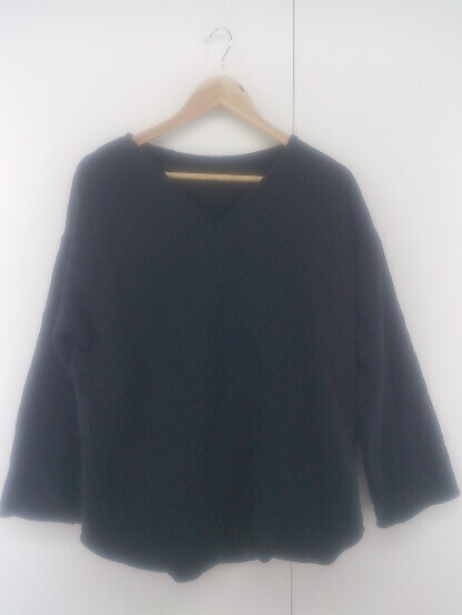 ◇ antiqua tree cafe アンティカ ツリーカフェ Vネック 長袖 カットソー サイズL ブラック レディース P