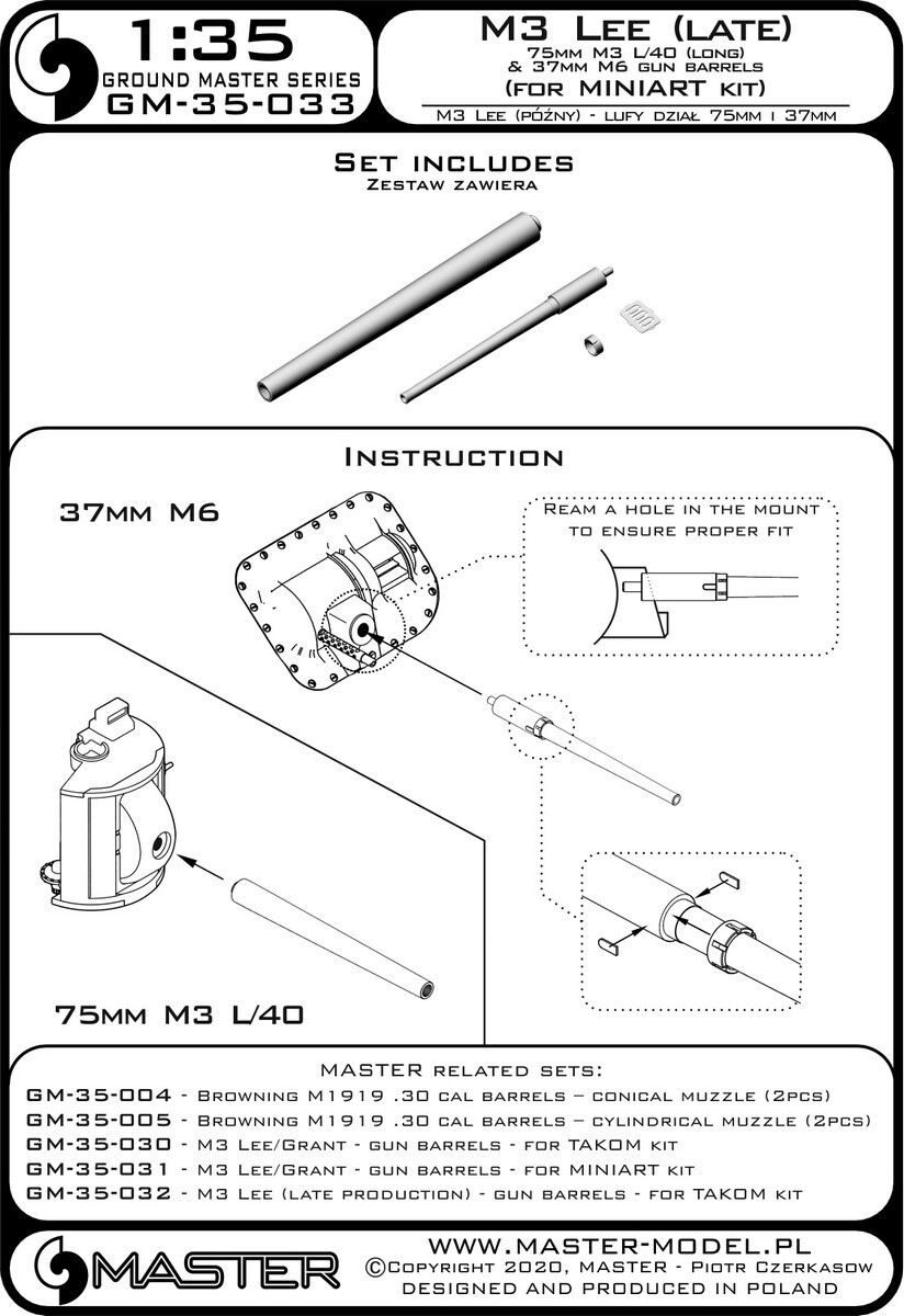 マスター GM-35-033 1/35 M3 リー (late production) - 75mm M3 L/40 (long) & 37mm M6 ガンバレル (ミニアート用)