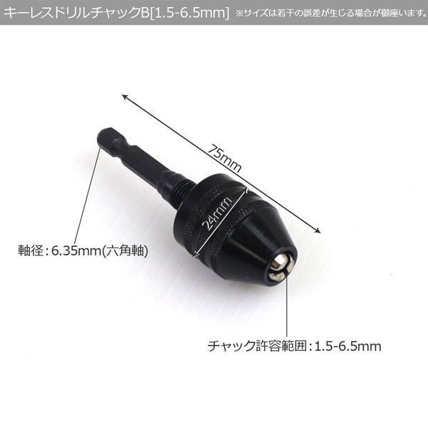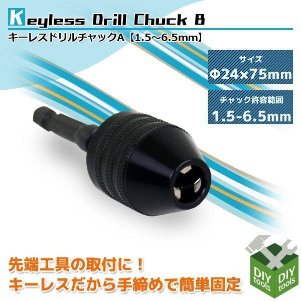 【クリックポスト便】キーレスドリルチャック 小型 チャック許容範囲 1.5-6.5mm 六角軸6.35mm 先端工具 正回転専用 電動ドリル