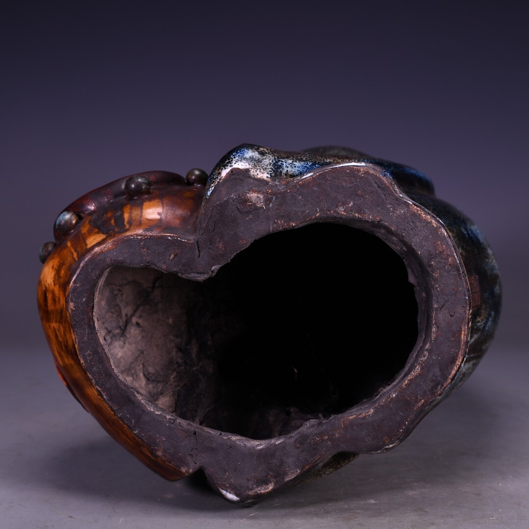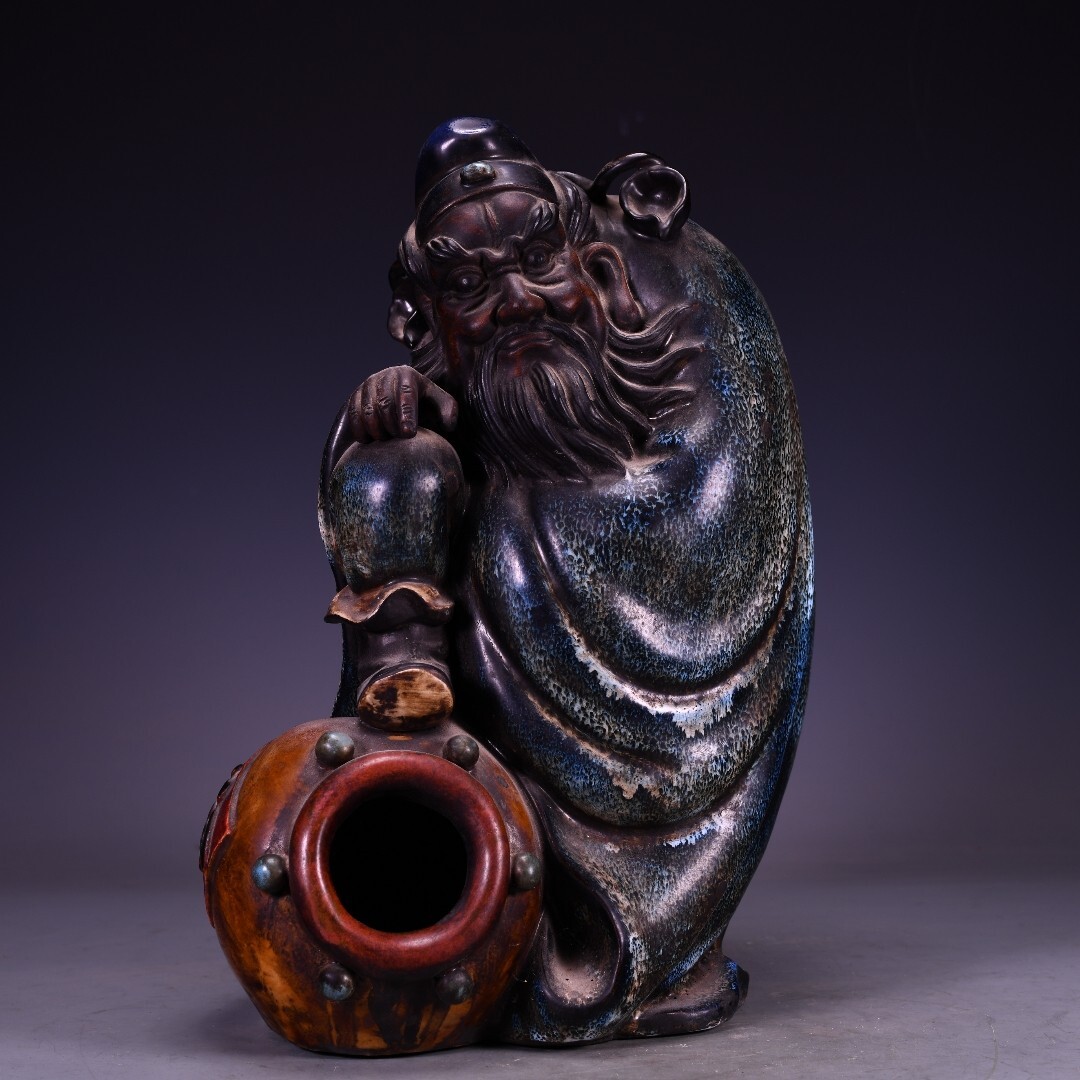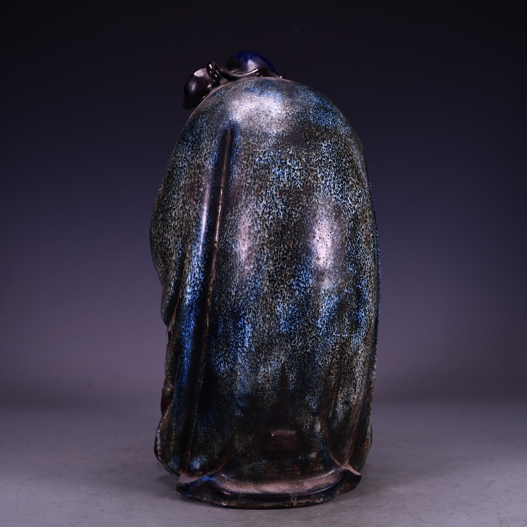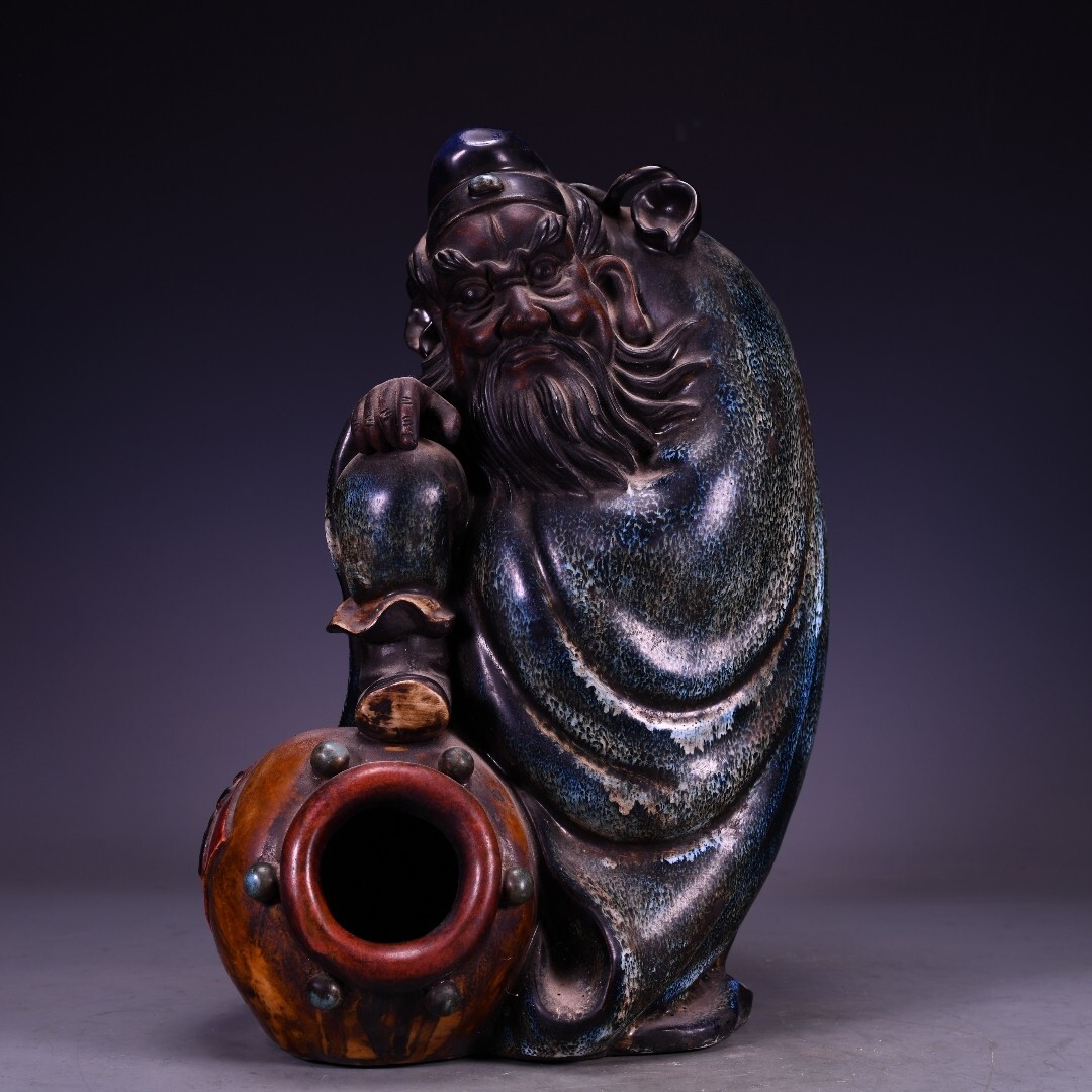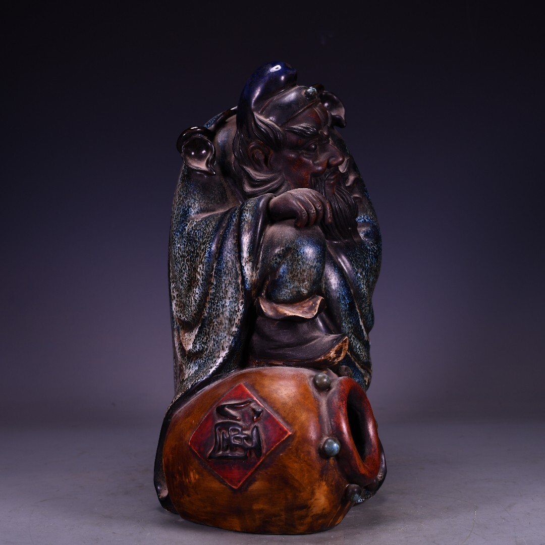 磁器 中國 清代 石灣窯 捏雕塑像雪花藍釉鍾馗醉酒 瓷器 唐磁 古陶磁器 時代物 中国美術 賞物 置物 古美術品 BHC19