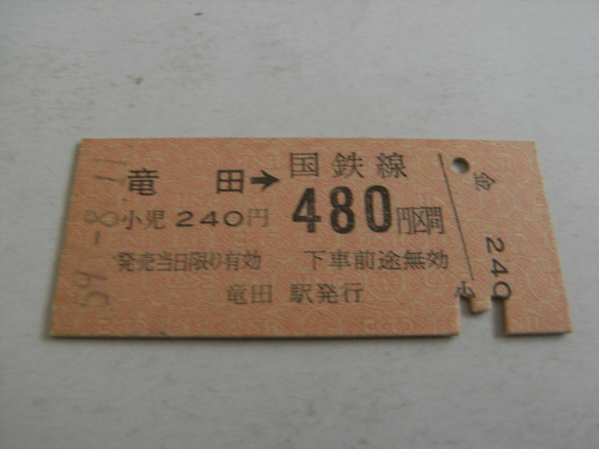 常磐線 竜田→国鉄線480円区間 昭和59年8月11日 竜田駅発行