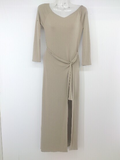◇ GYDA ジェイダ フロントスリット 長袖 膝下丈 ワンピース サイズF ベージュ系 レディース P