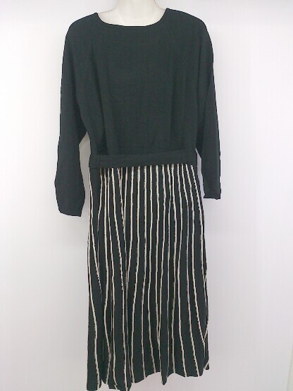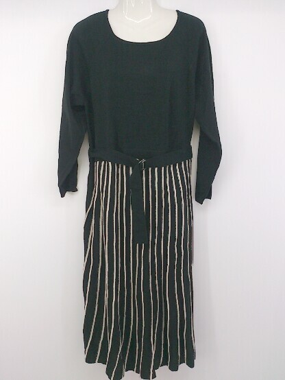 ◇ ◎ And Search 大きいサイズ 切替 ストライプ 長袖 膝下丈 ワンピース サイズ4L ブラック アイボリー レディース P