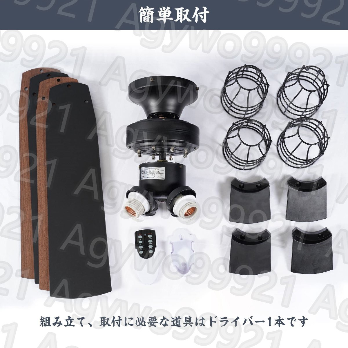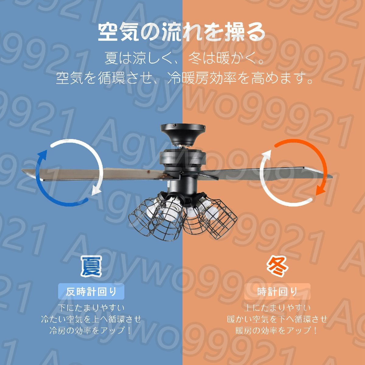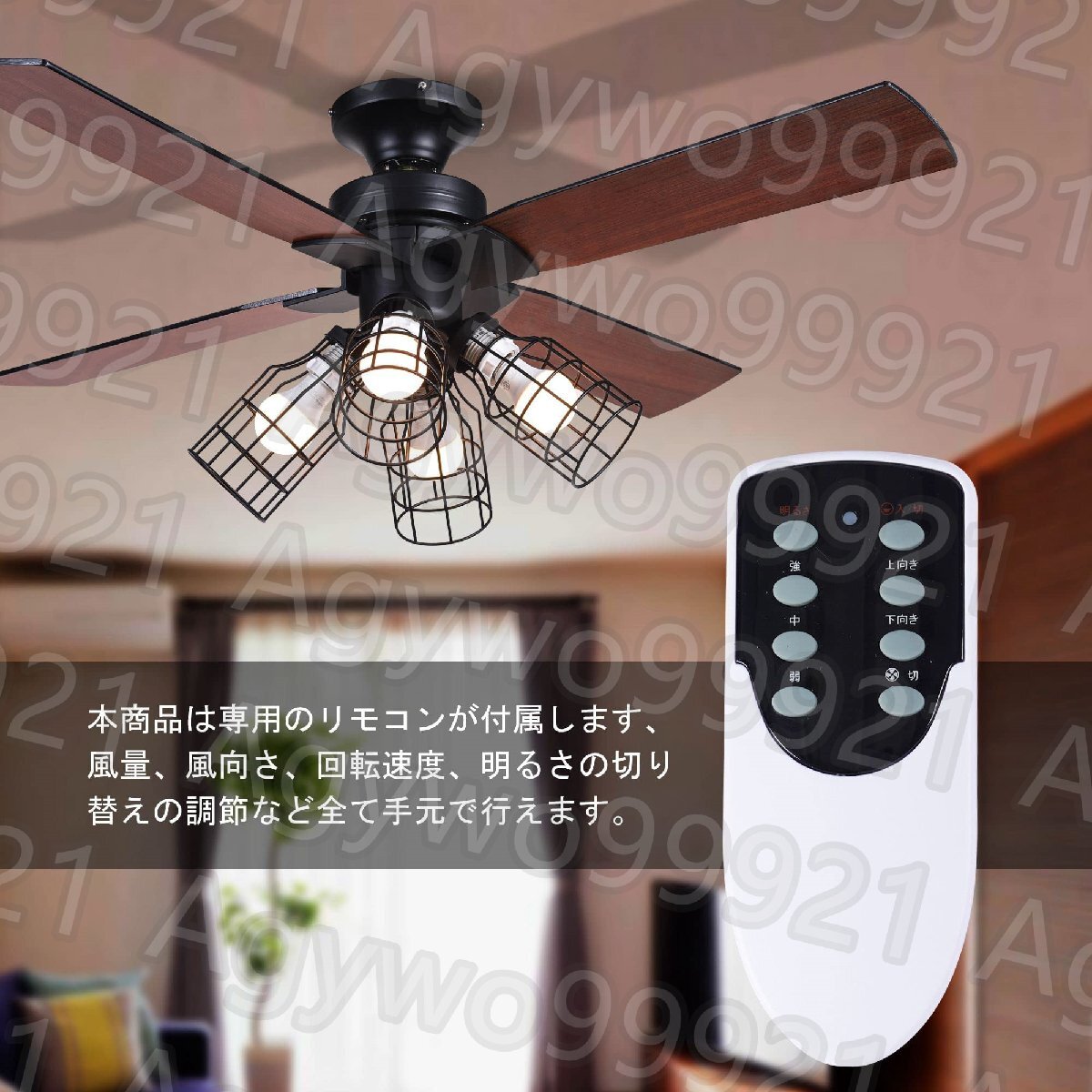 【お部屋の明かりをコントロール】本商品は専用のリモコンが付属します、風量、風向さ、回転速度、明るさの切り替えの調節など全て手元で行えます。点灯する電球を変更して明るさを調整できます、リモコンの風向き切替ボタン、回転速度切替ボタンを操作することで風量や風の向きを変更可能です。これ一つで、お部屋の明かりをコントロール!