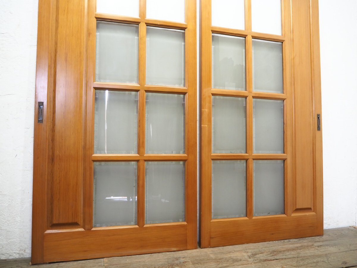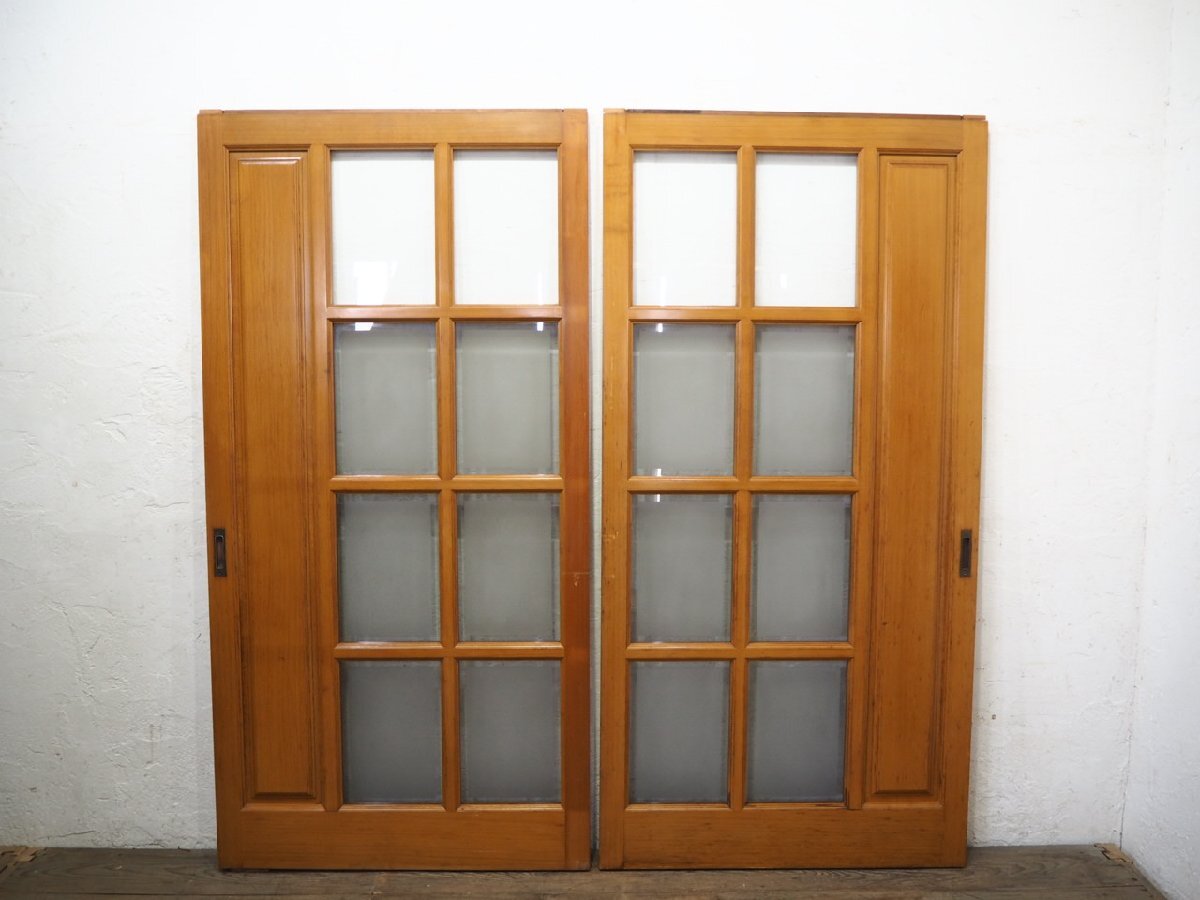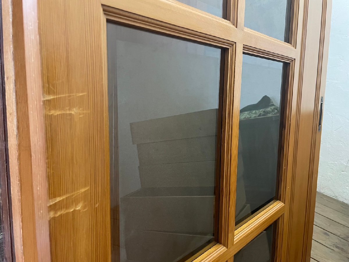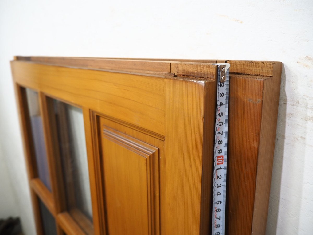 商品情報 | ■商品詳細■ レトロな古い木枠ガラス戸、2枚セットです。 長年使い込まれた味わいのある品です。 ガラスは、サンドブラスト加工の透明ガラスと透明ガラスを使用しています。 一般のご家庭はもちろん、レトロな店舗什器にもお勧めです。 経年の傷や欠け、染みやヒビ、古い補修やガラスに画像の様な線キズ、 表面の塗装の剥がれ等がありますが、使用には問題ありません。 ガラスにヒビや割れはありません。 古い塗装のため、配送中に多少剥がれることがありますので、予めご了承下さい。 古い物とご理解いただければ幸いです。 ◆別カテゴリーにて、同じデザインの品(Q0892)を出品していますので まとめてご希望の場合は、ストア内検索で上記の管理番号を検索して頂ければと思います。 売買済みの場合はご了承下さい。 ご不明な点などありましたら、質問欄にてお願いします。 ■サイズ■ 全体(最大値) (H 177,5cm×W 88cm×D 3,5cm)×2枚 竪框 6cm 鴨居に入る部分 1,5cm 多少の誤差はご了承下さい。 ドライバー1人での配達になりますので、場合(通路が狭い等)によっては 荷運びのお手伝いをお願いすることがあります。 商品は玄関先までの配達になります。 |