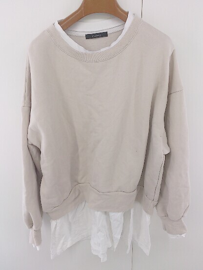 ◇ w closet ダブルクローゼット レイヤード チュニック 長袖 トレーナー サイズF ベージュ ホワイト系 レディース E