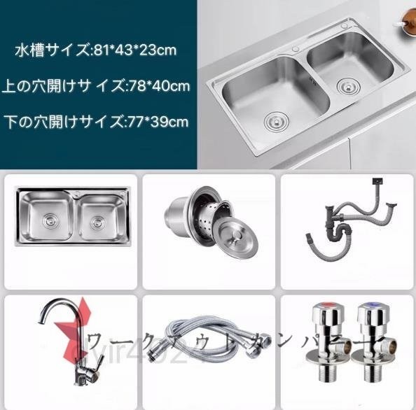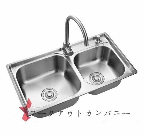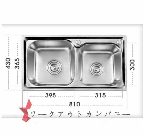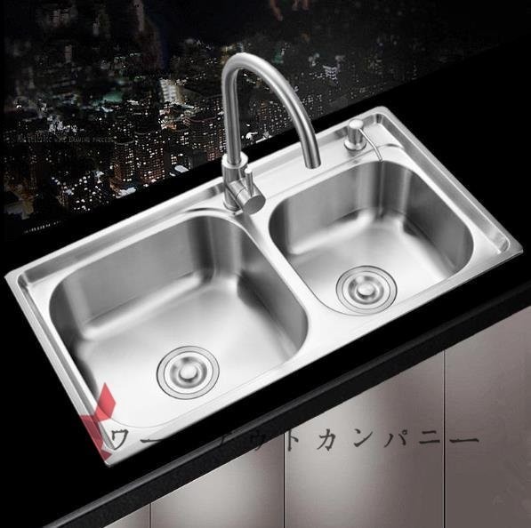 高品質★定番人気☆キッチン用品 ステンレス製流し台 台所 2槽シンク 食器洗いシンク 野菜シンク 肥厚大容量 便利 セット内容多い