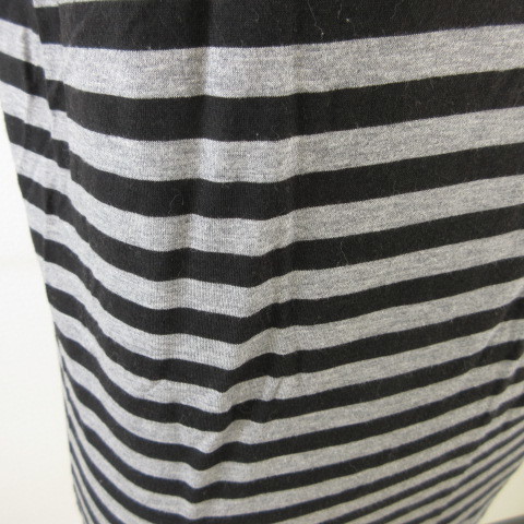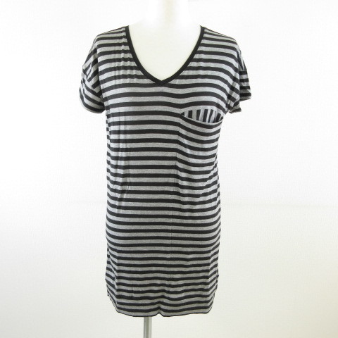 コムサ COMME CA チュニック カットソー 半袖 ボーダー Vネック グレー 黒 11 *T232 レディース