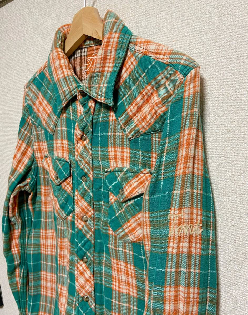 美品 TMT Wガーゼシャツ サイズS チェック 刺繍 キムタク着