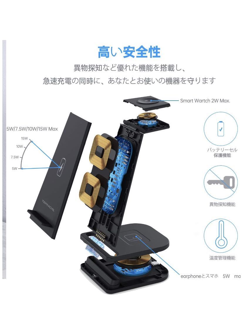 【急速3in1ワイアレス充電器】TEPNICAL ワイヤレス充電器はQC3.0充電アダプター付き、同時にスマホ、AirPods、iWatchに充電出来ます、ワイヤレスの利便を楽しんで、絡み合ったケーブルに別れを告げます。家庭と仕事にピッタリです、置くだけで充電可能になります、急速なワイヤレス充電の体験を現実できます。