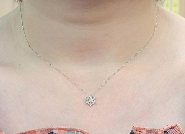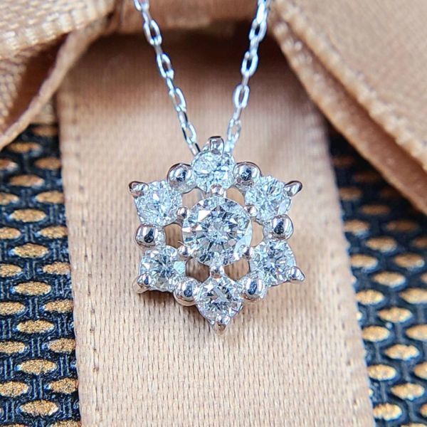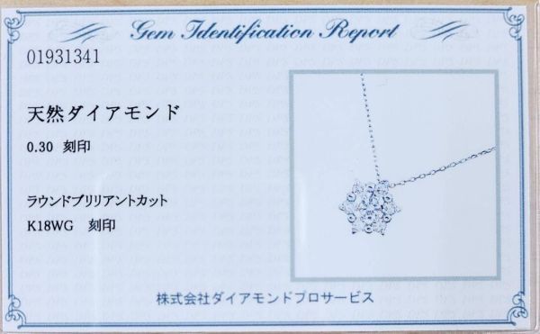 【鑑別書付】 キラキラ☆雪の結晶 0.3ct ダイヤモンド K18 WG ホワイトゴールド ペンダント ネックレス 4月の誕生石 18金