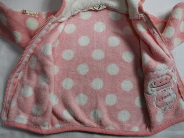 BD482【Sunny Sheep・サニーシープ】フード付き 羊さん 長袖 ジャケット 女児 淡赤 80 | ||
