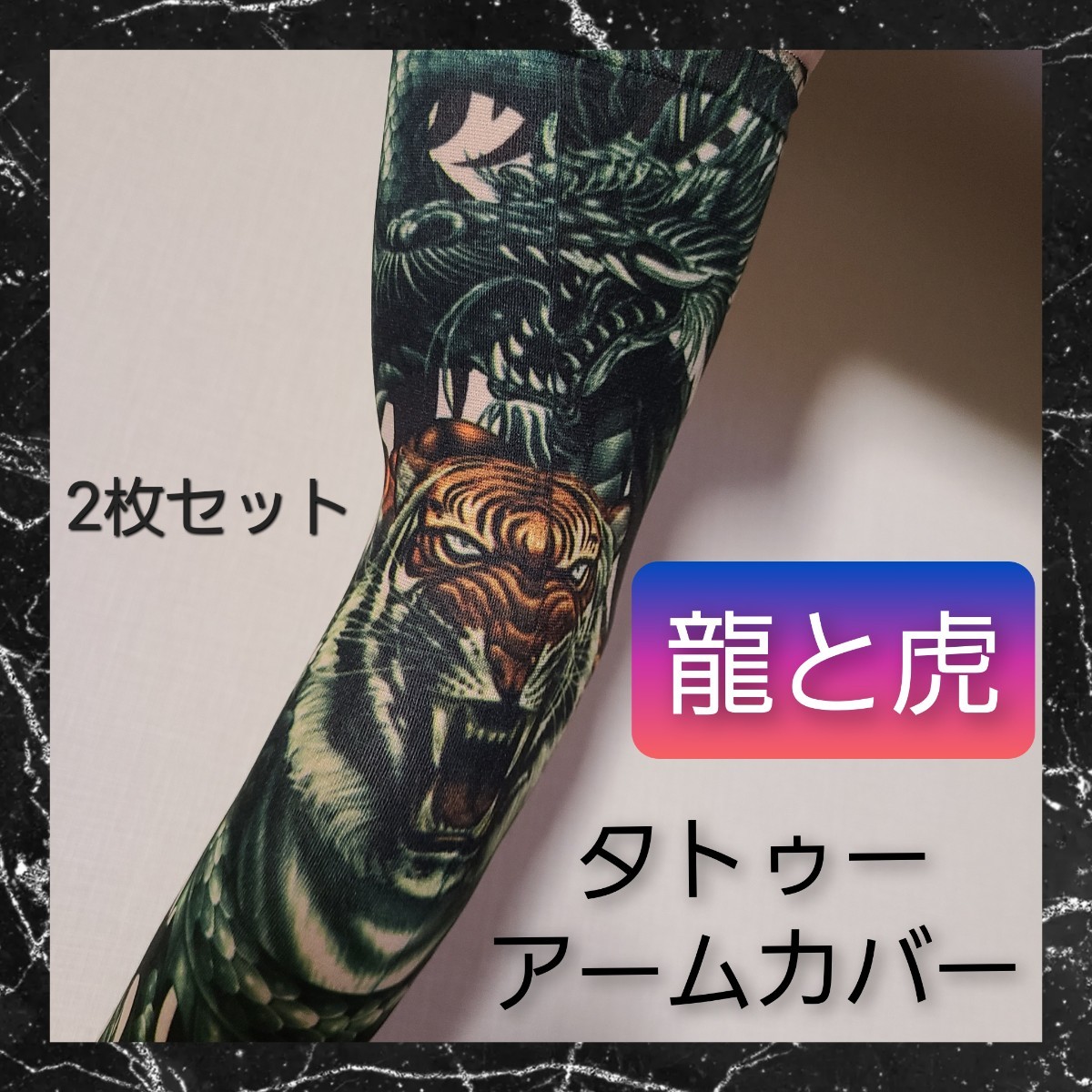 タトゥーを入れているように見えるカッコいいアームカバー、左右2枚セットです。