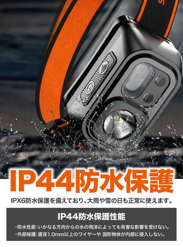 IPX6防水機能を備えており、大雨や雪の日も正常に使えます。通気性良いのヘッドバンドは弾力がある、長時間装着しても疲れにくいです。自由に調整でき、ヘッドバンドの上に反射テープが付いて、夜間アウトドア活動にはには安心です。