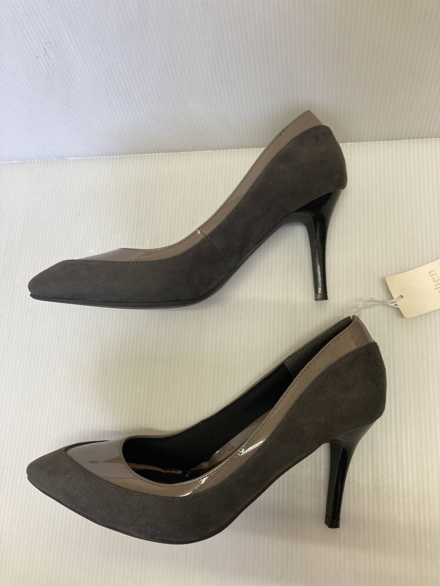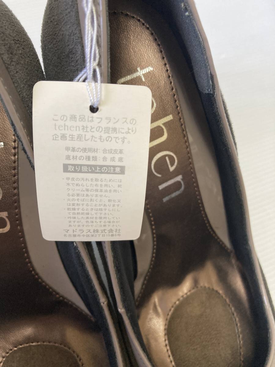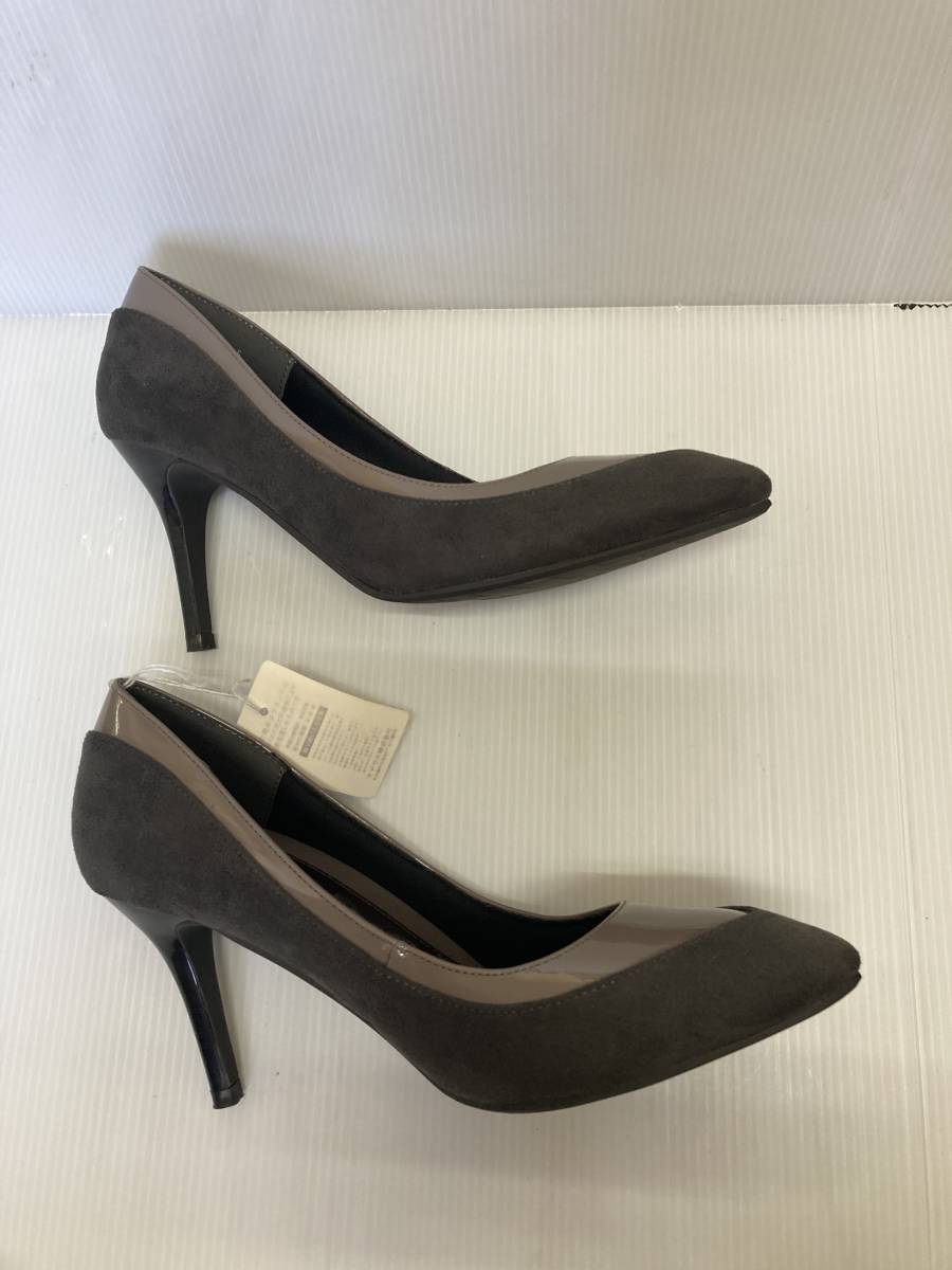 ●お買い得!madras tehen ピンヒールパンプス TN1628 グレー/C 23.5㎝ ヒール高さ約8㎝ スエードとエナメルのコンビがおしゃれ