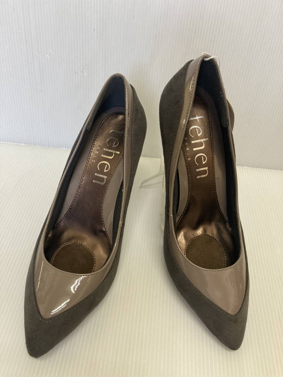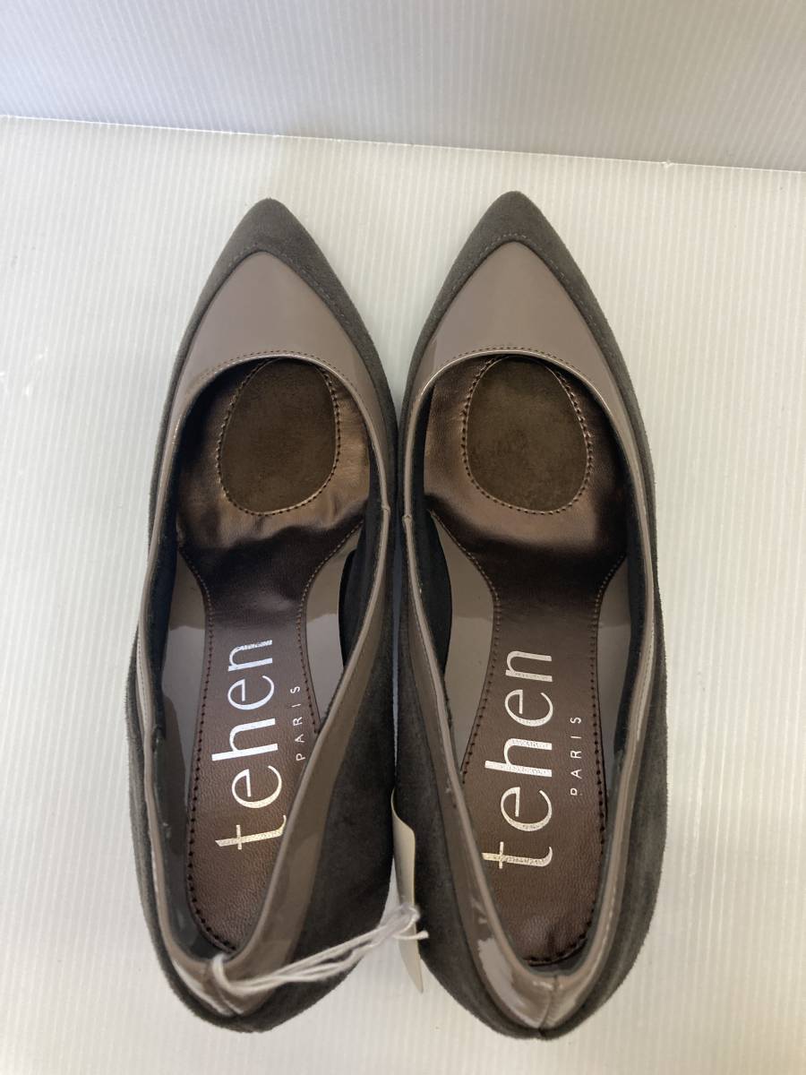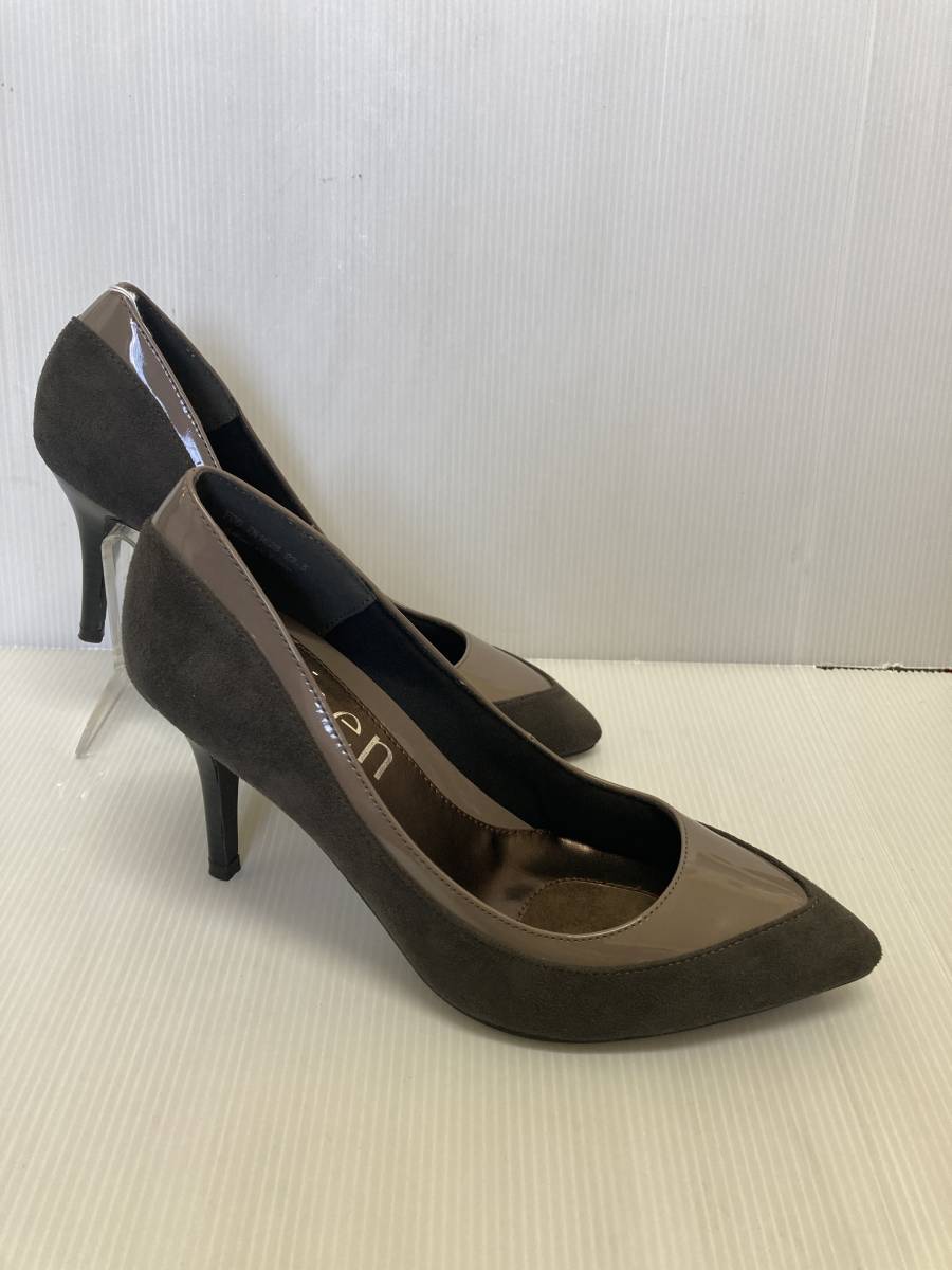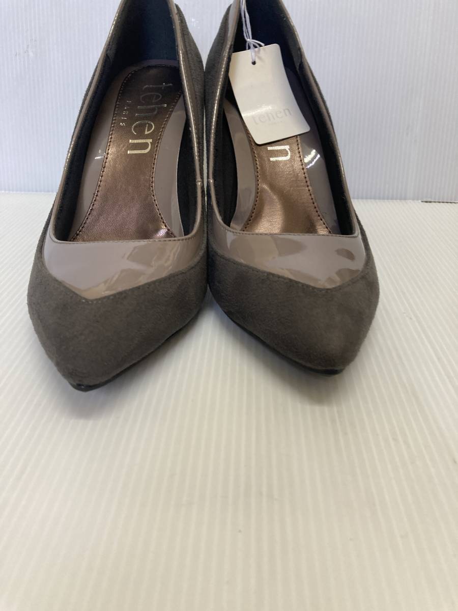 ●お買い得!madras tehen ピンヒールパンプス TN1628 グレー/C 23.5㎝ ヒール高さ約8㎝ スエードとエナメルのコンビがおしゃれ