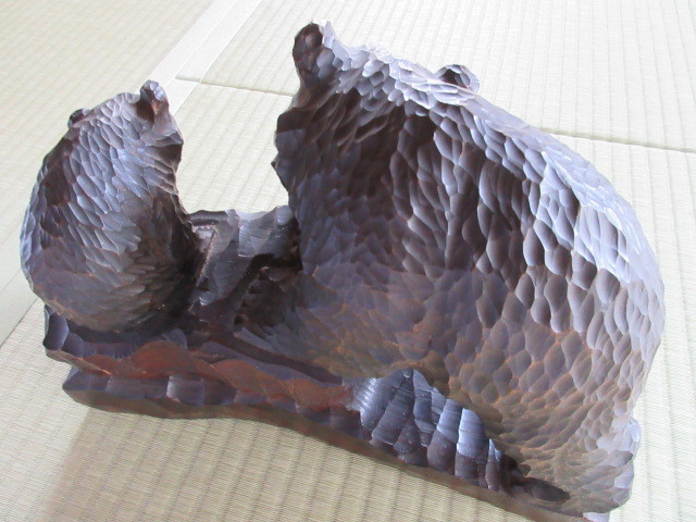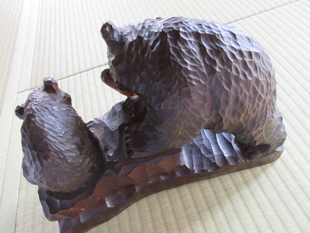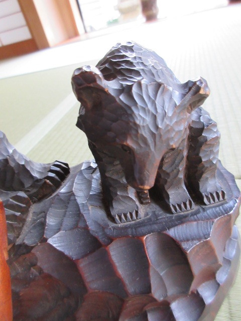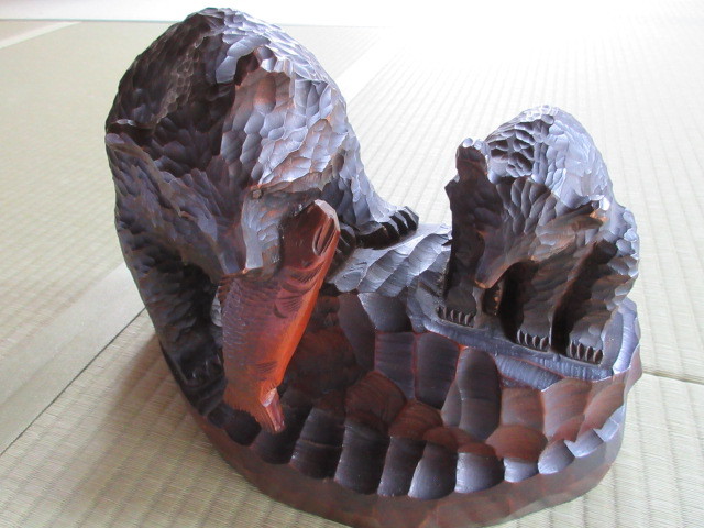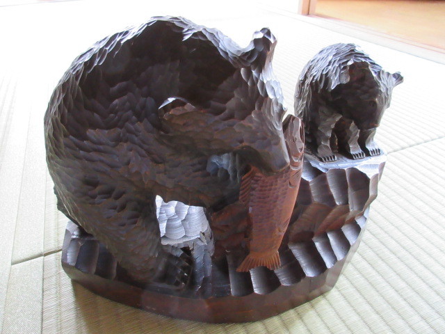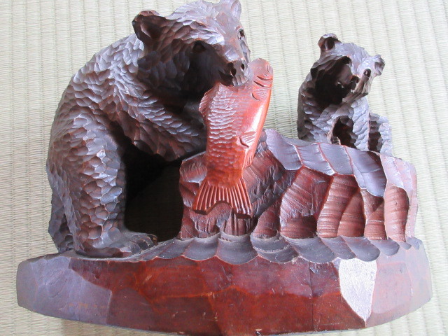 木彫りの熊 親子熊 鮭をくわえたビンテージ作品 北海道 民芸